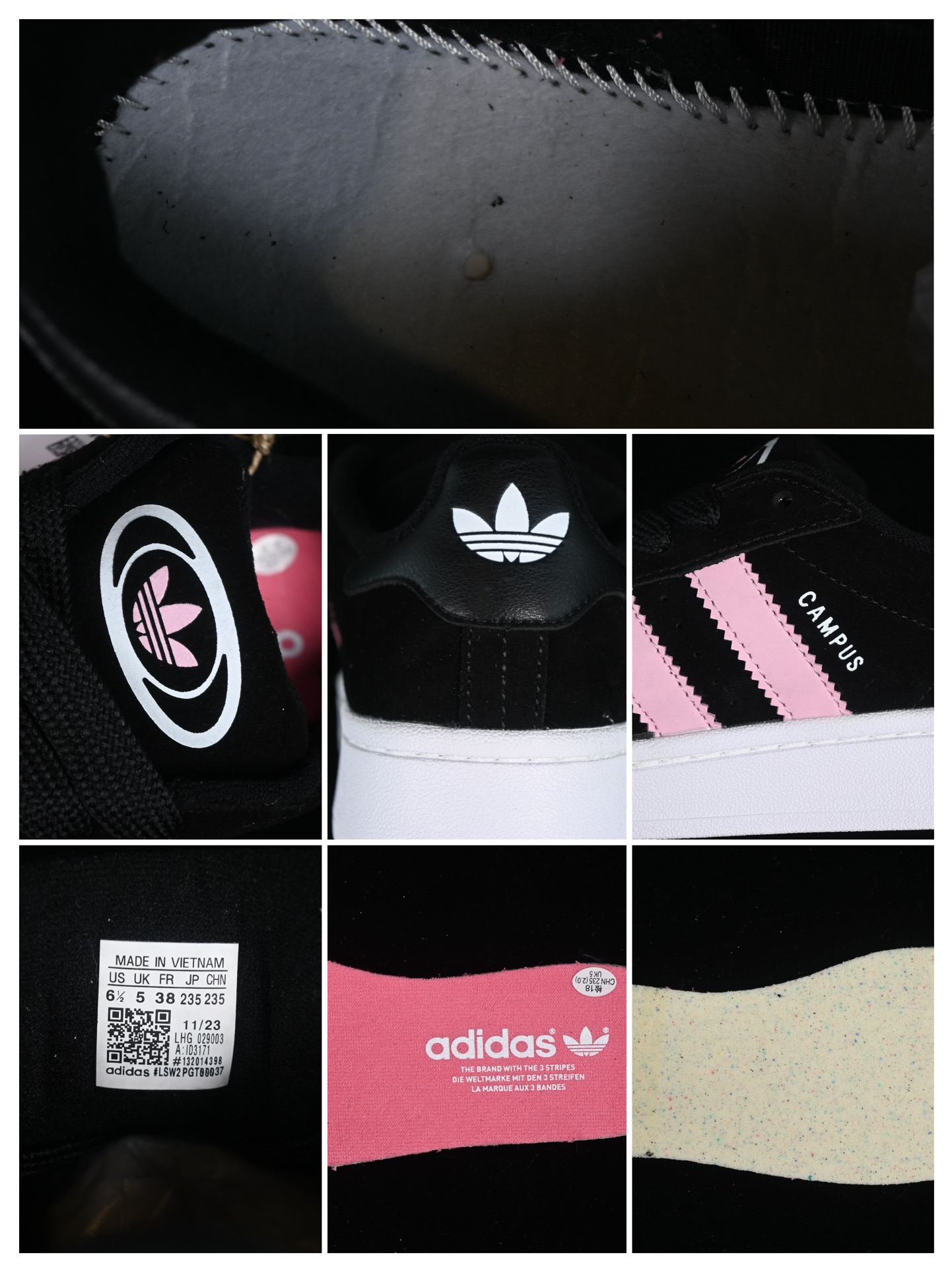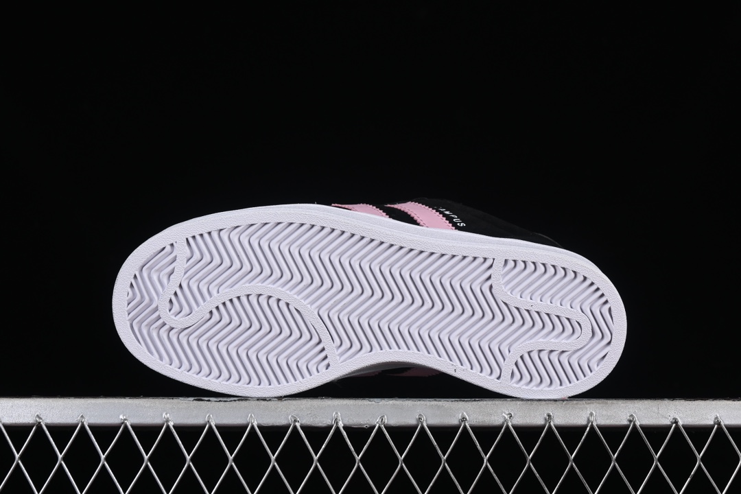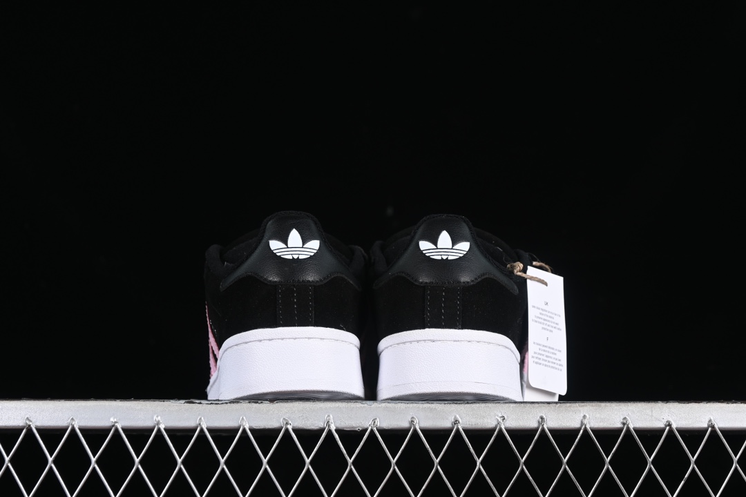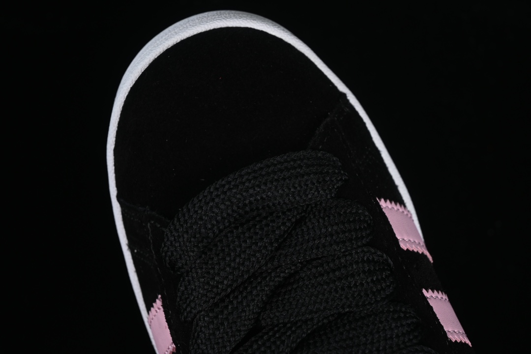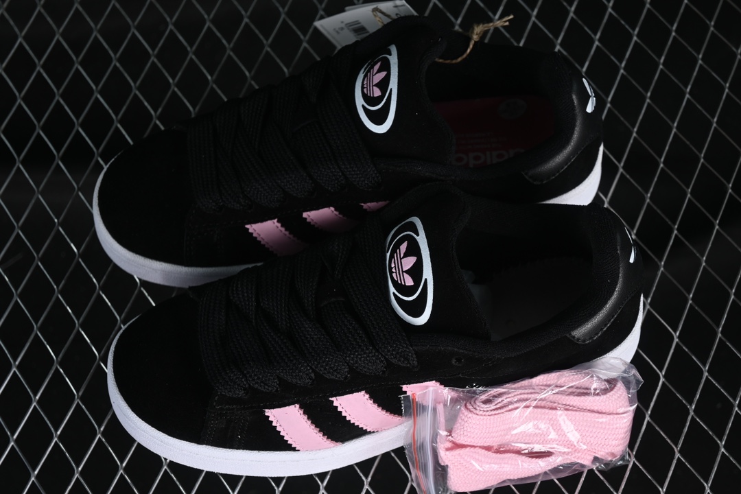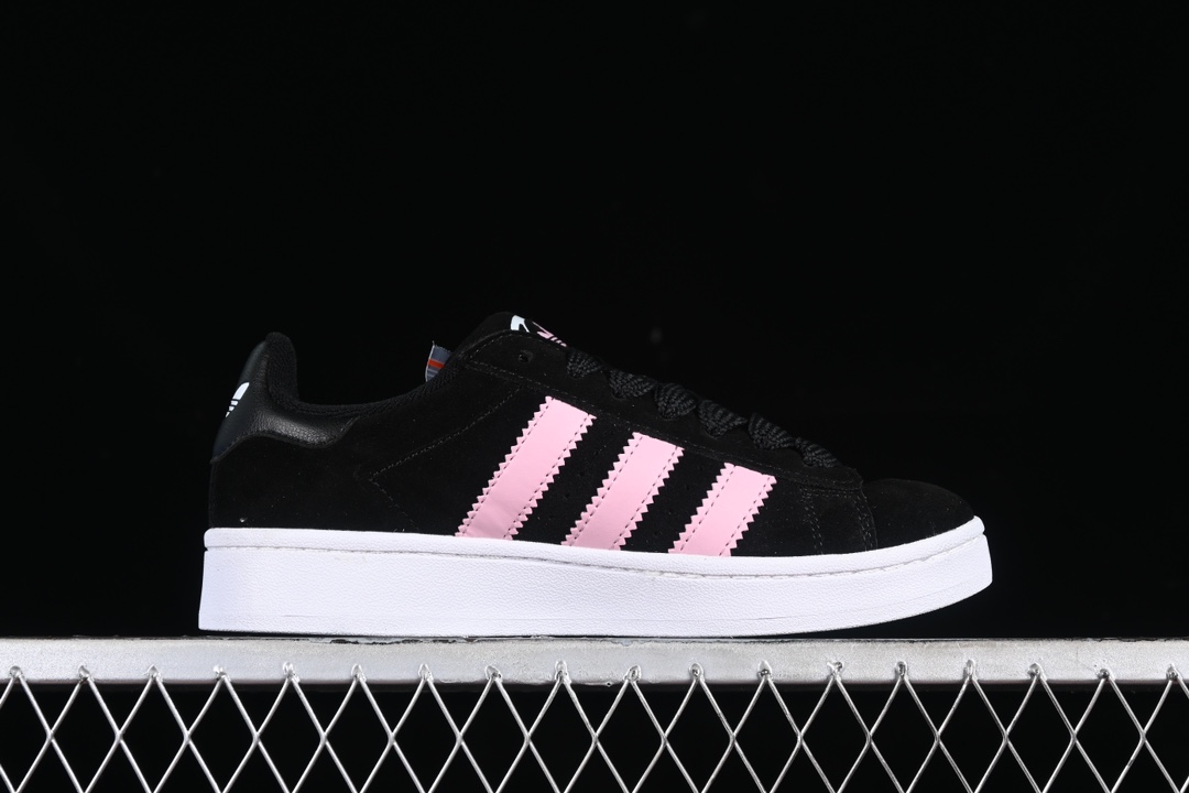 L’Adidas Campus 00s Core Black True Pink ID3171 est une paire de chaussures qui combine style rétro et touches modernes. Le modèle est principalement de couleur noire, avec des accents de rose vif, donnant un contraste frappant et une allure dynamique. La tige est fabriquée en suède de haute qualité, offrant à la fois durabilité et un aspect premium. Les trois bandes emblématiques d’Adidas sur les côtés sont également en suède mais se détachent en rose pour un effet visuel accrocheur.