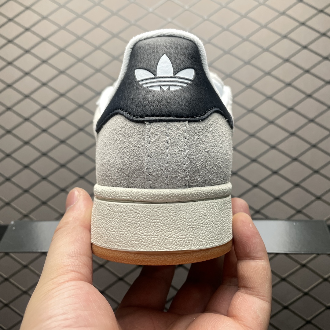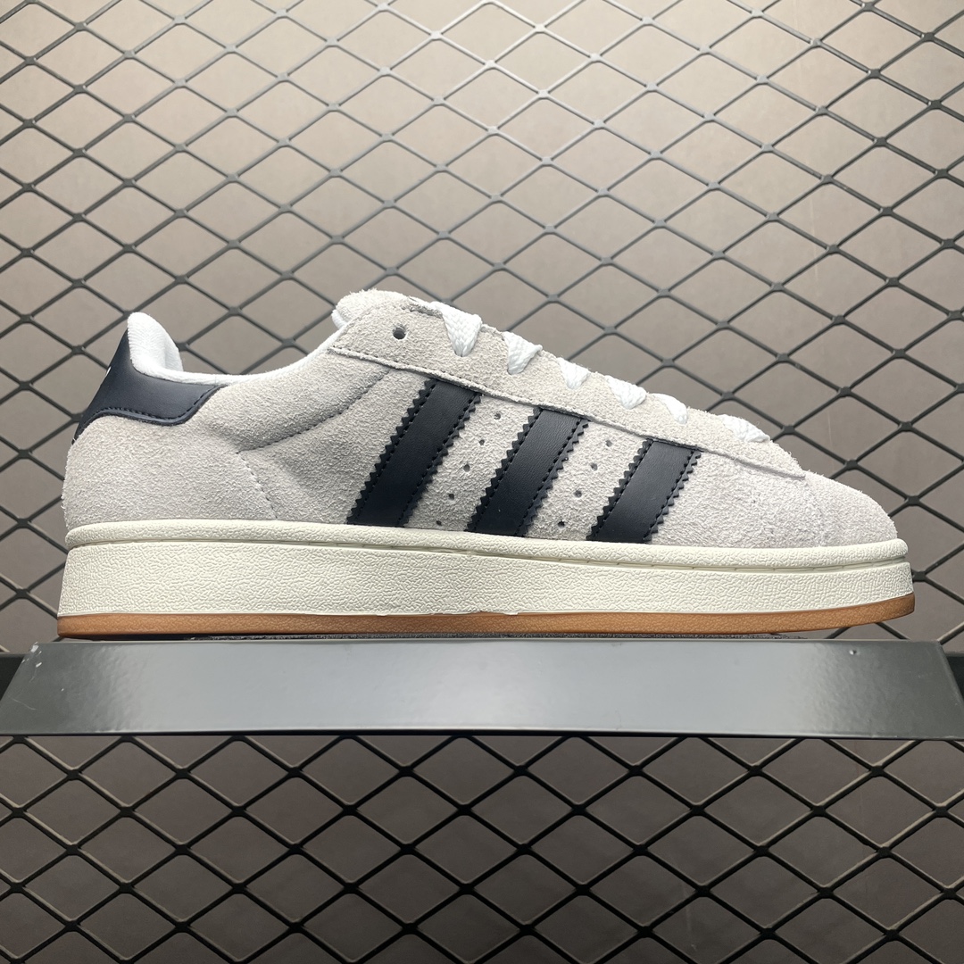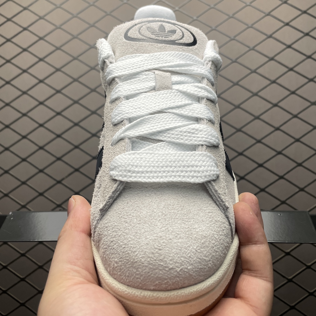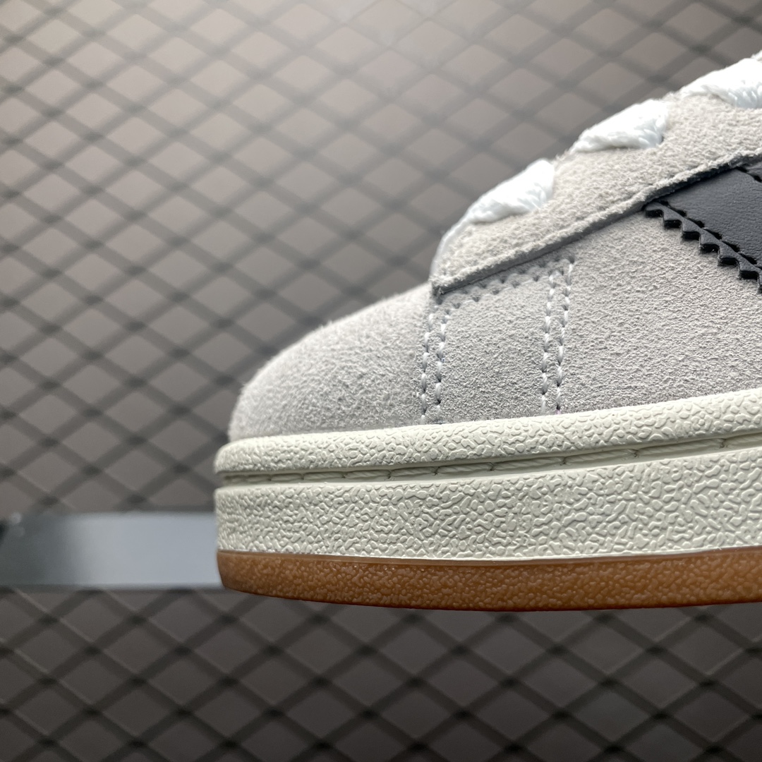 Adidas Campus 00s Crystal White Core Black GY0042 est une paire de baskets blanches et noires avec un design rétro et une semelle en caoutchouc.
