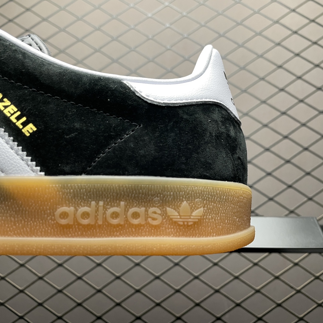 La semelle extérieure est en gomme, un choix classique pour les modèles Gazelle, offrant non seulement une esthétique vintage mais aussi une excellente adhérence et durabilité. Cette semelle en gomme, de couleur naturelle, complète parfaitement le design noir et blanc de la chaussure, tout en améliorant le confort et le soutien lors de la marche.