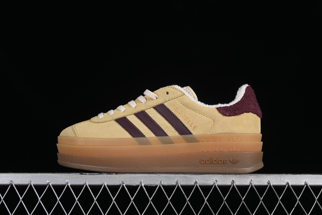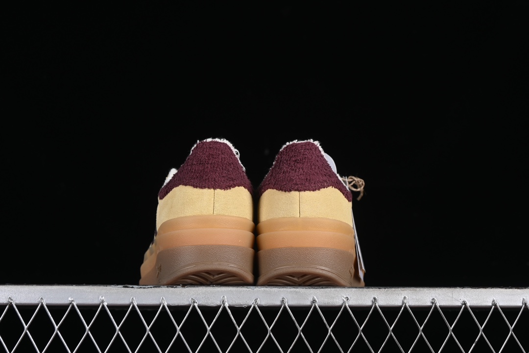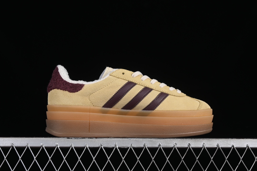 L’Adidas Gazelle Bold Yellow/Maroon IF5937 est une réinterprétation audacieuse et colorée du modèle classique Gazelle de la marque Adidas. Cette version spécifique se distingue par sa combinaison de couleurs vives, avec une dominante de jaune audacieux sur la majorité de la tige, complétée par des détails en bordeaux (Maroon) qui ajoutent un contraste élégant.