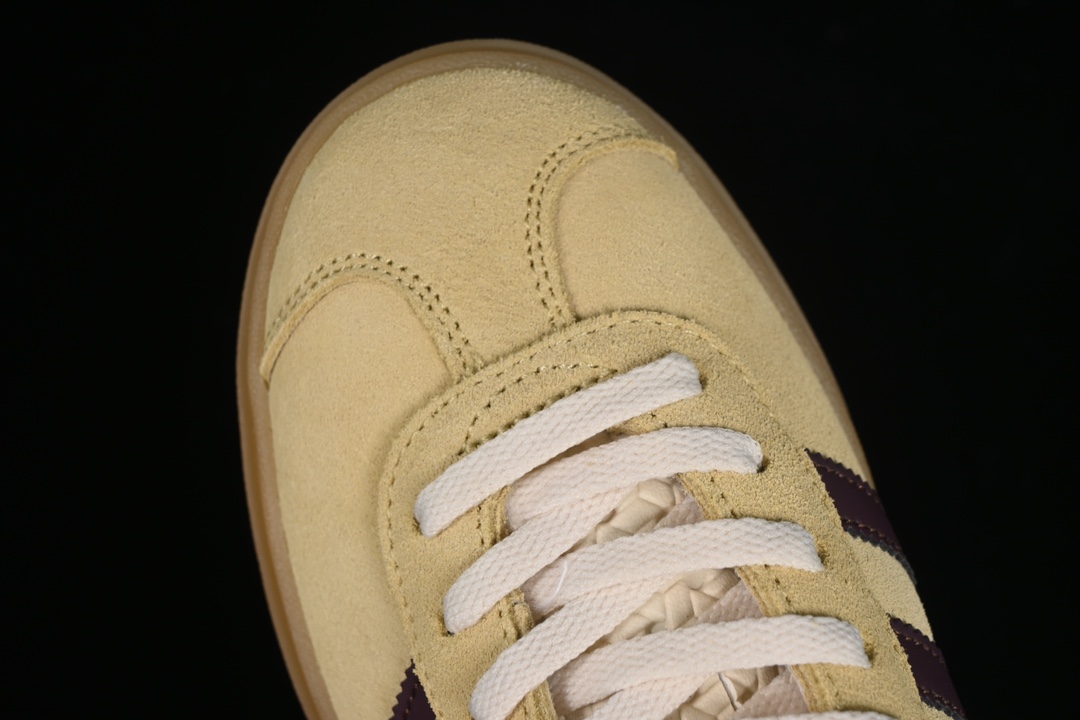 La tige est fabriquée en suède de haute qualité, offrant à la fois durabilité et un aspect premium. Le suède est doux au toucher et procure une sensation de confort immédiat. Les trois bandes emblématiques d’Adidas sur les côtés sont également en couleur bordeaux, assorties à la languette, au talon et aux lacets, créant ainsi une harmonie visuelle attrayante.