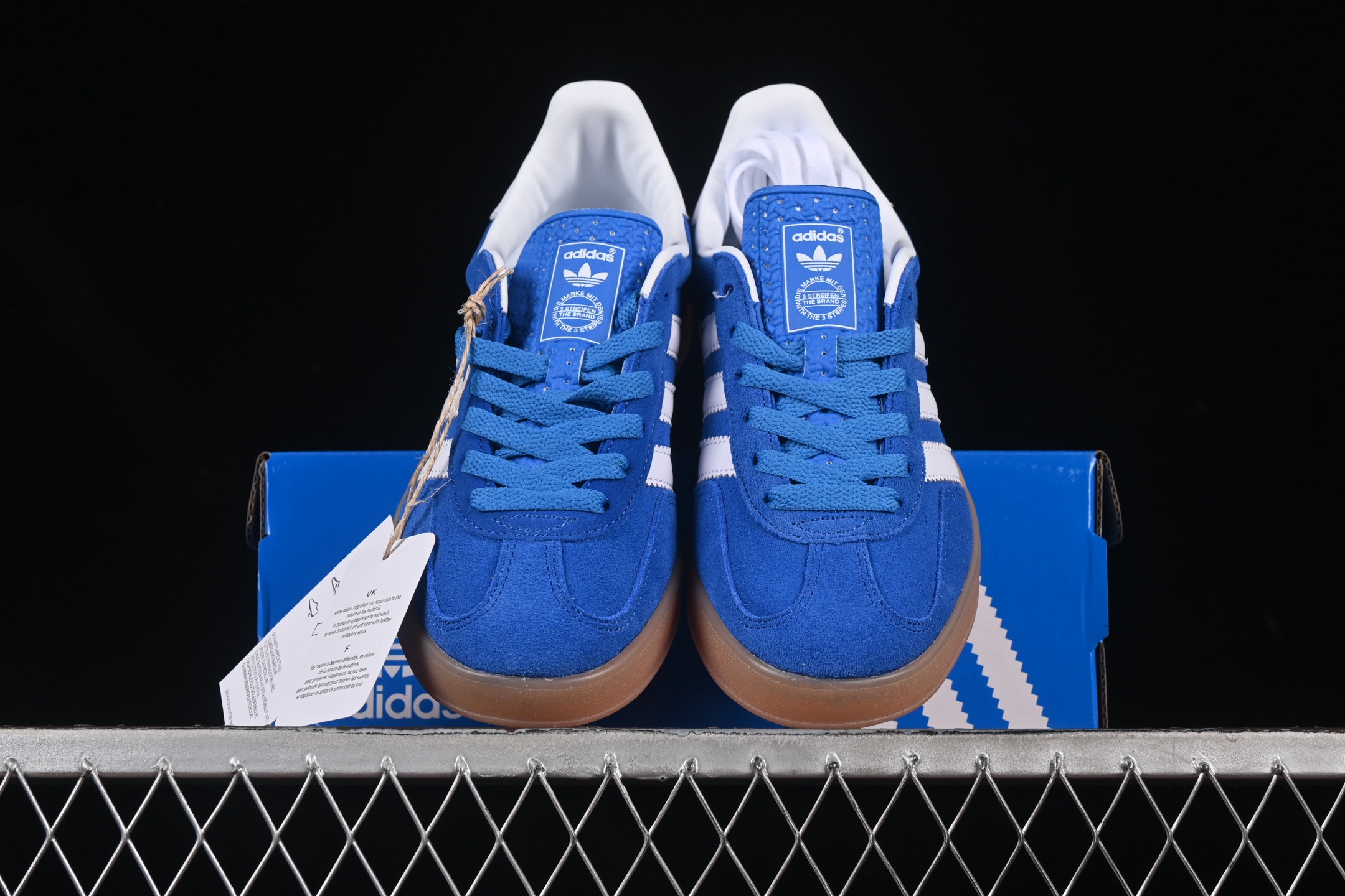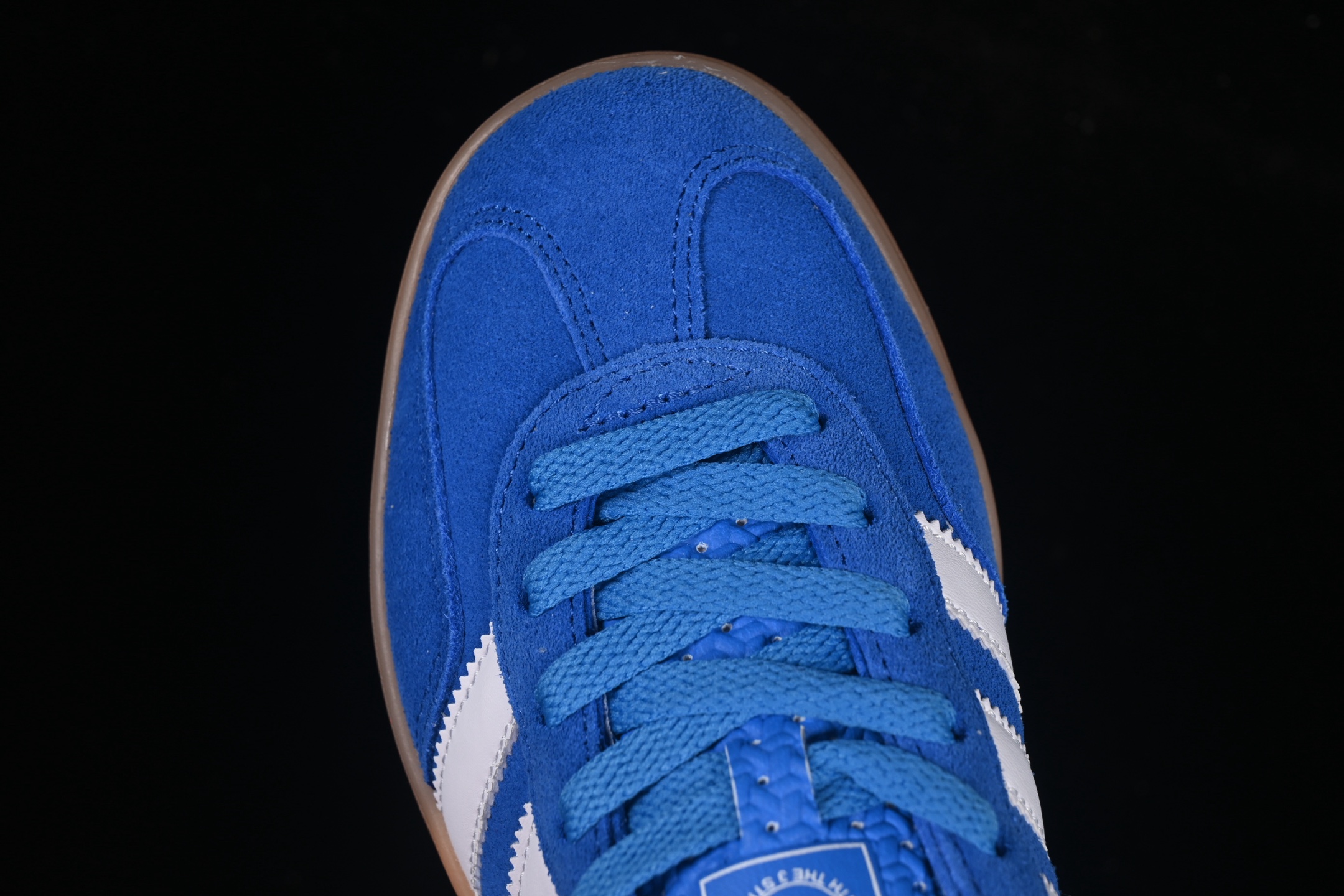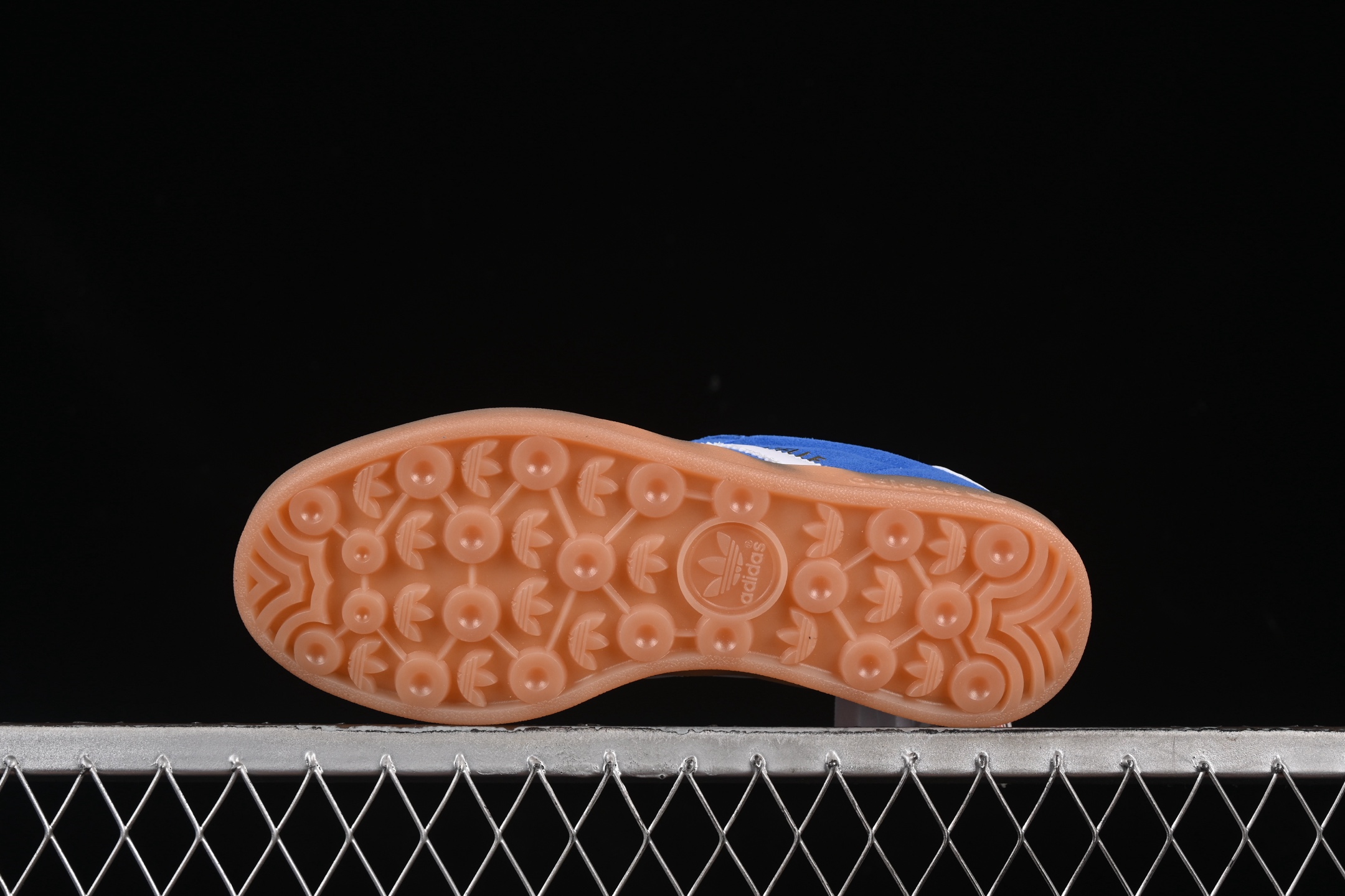 La Adidas Gazelle Indoor Blue Bird Cloud White JI2061 est une chaussure emblématique qui allie style rétro et confort moderne. Cette version de la Gazelle se distingue par sa couleur « Blue Bird », un bleu vif et captivant qui attire immédiatement l’œil. La tige est fabriquée en suède de haute qualité, offrant une texture douce et un aspect luxueux. Les trois bandes emblématiques d’Adidas, en « Cloud White », contrastent élégamment avec le bleu de la tige, ajoutant une touche classique et reconnaissable.