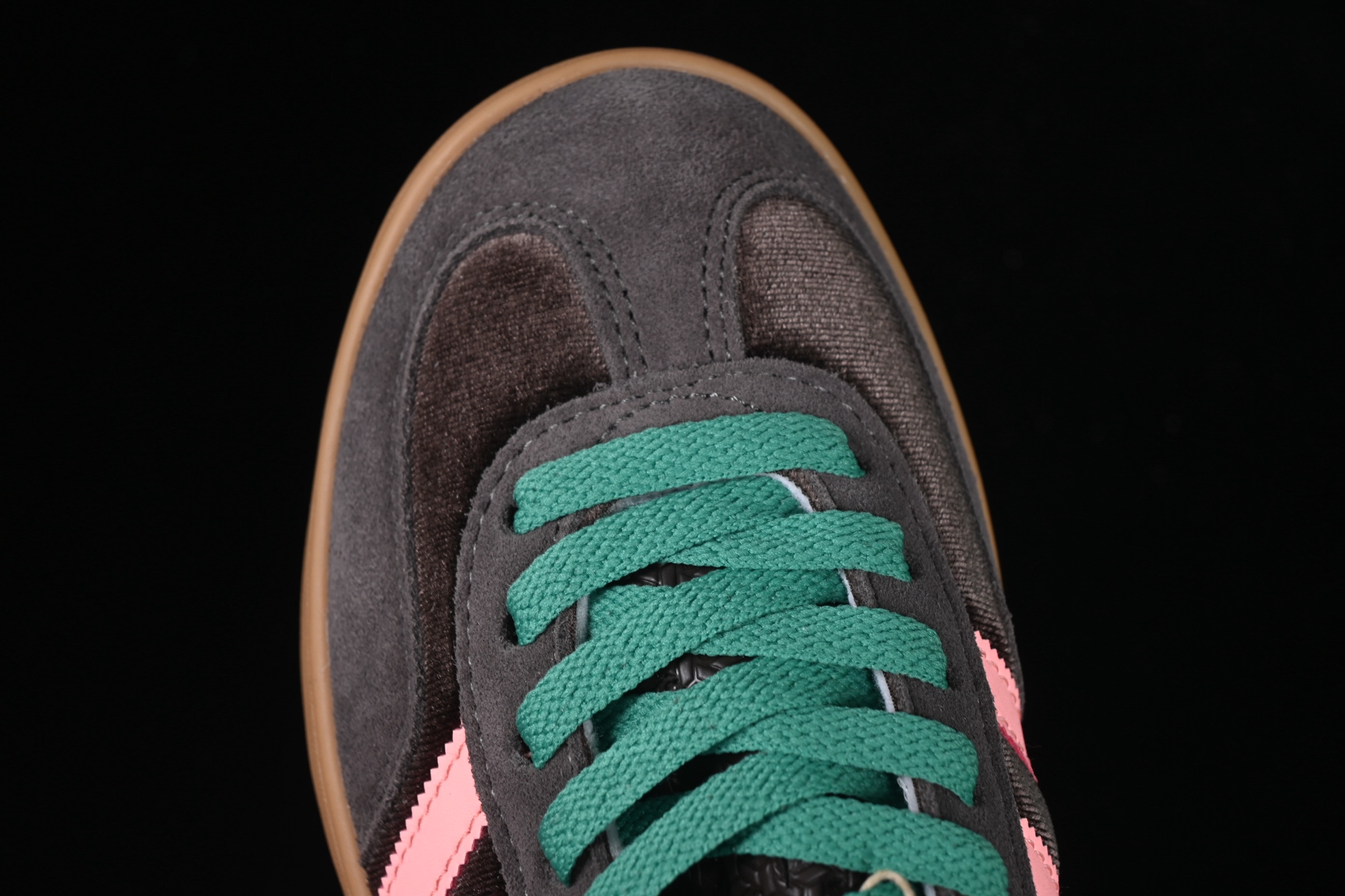 Les trois bandes emblématiques d’adidas, en cuir contrastant, se détachent subtilement sur le fond en velours, renforçant l’identité de la marque tout en ajoutant une touche de style classique. La semelle en caoutchouc translucide, conçue pour une adhérence optimale, assure confort et durabilité, ce qui en fait un choix idéal pour un usage quotidien.
