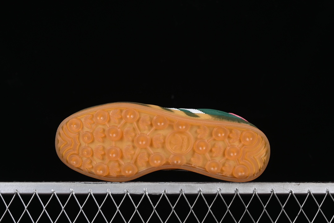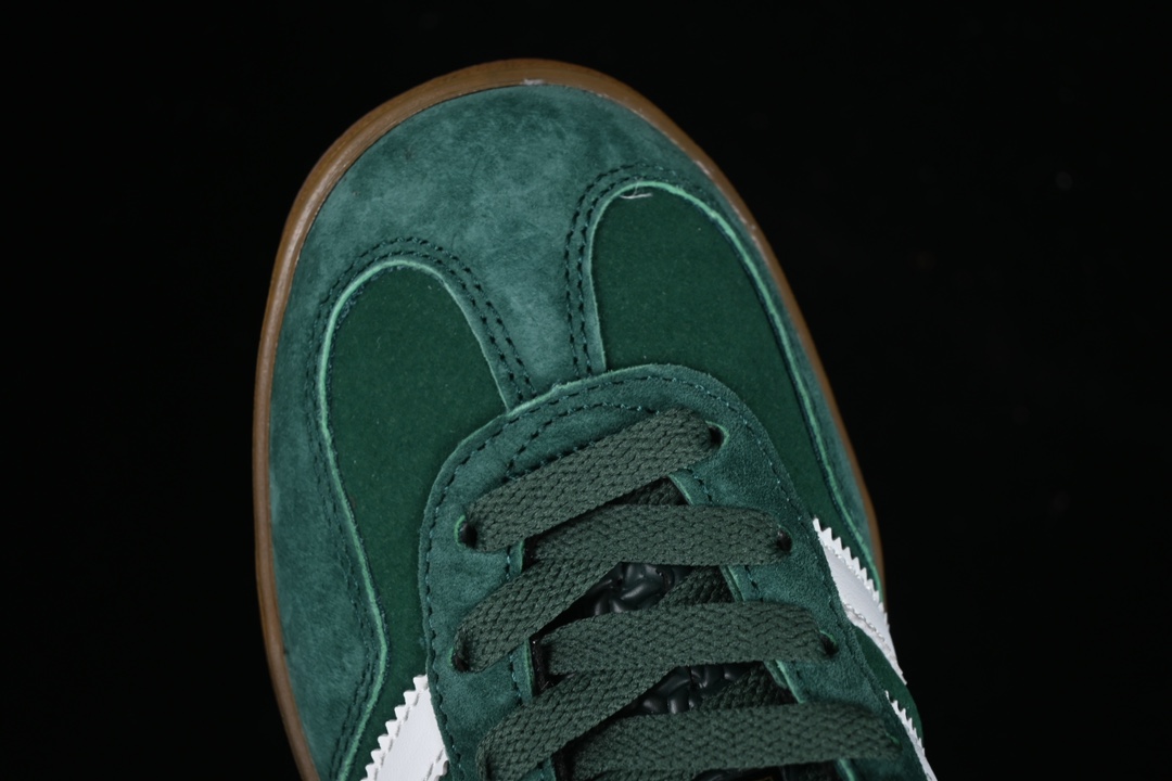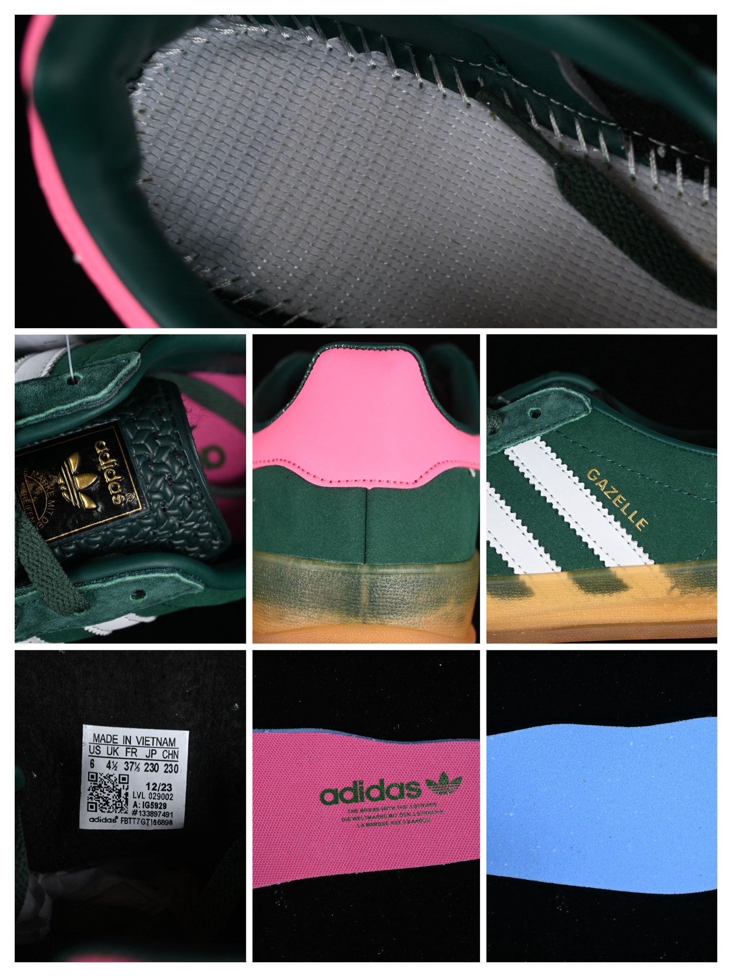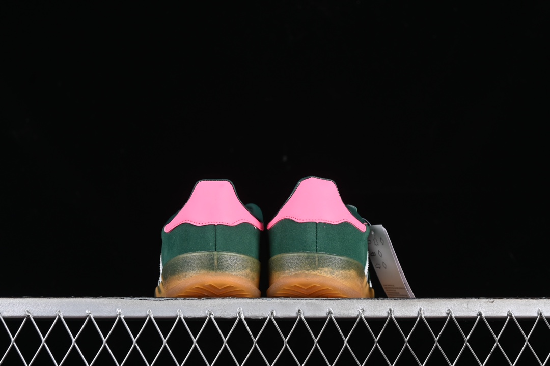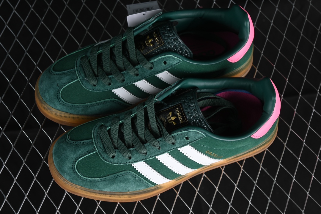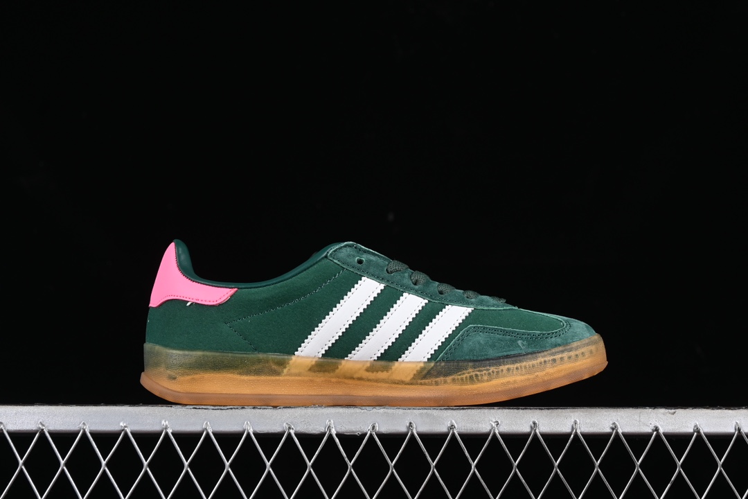 La chaussure adidas Gazelle Indoor Collegiate Green Lucid Pink IG5929 est un modèle de sneakers qui combine style rétro et confort moderne. Cette édition spécifique arbore une tige en suède de couleur verte « Collegiate Green », offrant une texture douce et un look vintage. Les détails en rose « Lucid Pink » ajoutent une touche de contraste vibrant, notamment sur les trois bandes emblématiques d’adidas et le patch au talon.