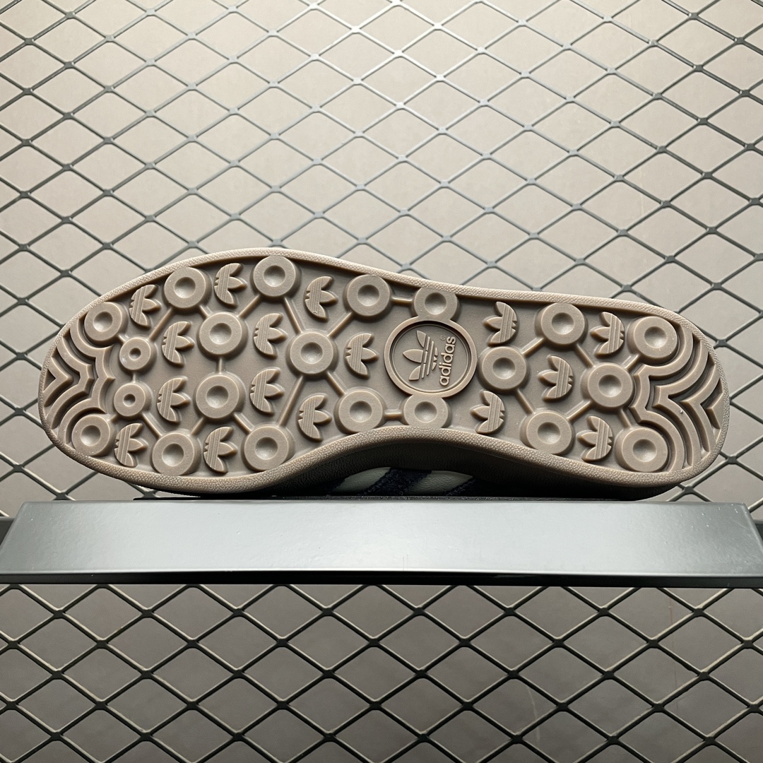 La tige de la Gazelle Indoor Emmi IH8548 est fabriquée en cuir de haute qualité, offrant à la fois durabilité et confort. La couleur principale de la chaussure est un bleu profond, avec des détails contrastants en blanc, notamment les trois bandes emblématiques d’Adidas sur les côtés. Cette combinaison de couleurs confère à la chaussure un look à la fois classique et raffiné.