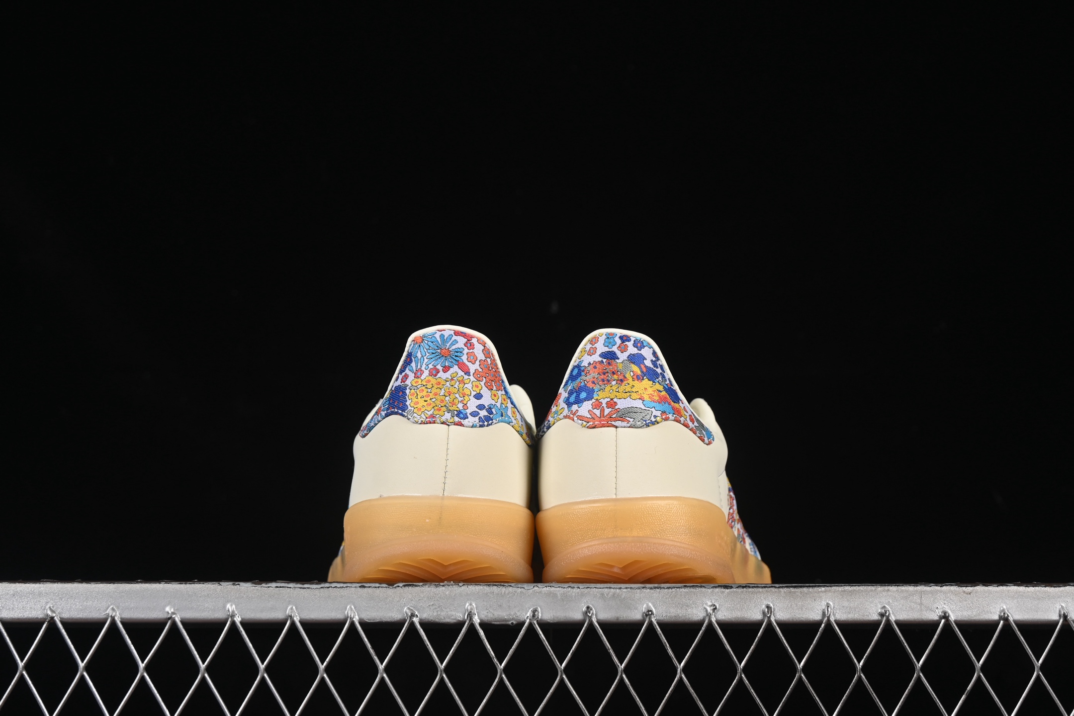 La tige de la chaussure est confectionnée en cuir de haute qualité, offrant à la fois durabilité et confort. Ce qui attire immédiatement l’attention, ce sont les bandes latérales emblématiques d’adidas, ornées d’une broderie florale délicate, signature de Liberty London. Ce motif floral ajoute une touche de sophistication et de créativité, transformant ces sneakers en une véritable pièce de collection.