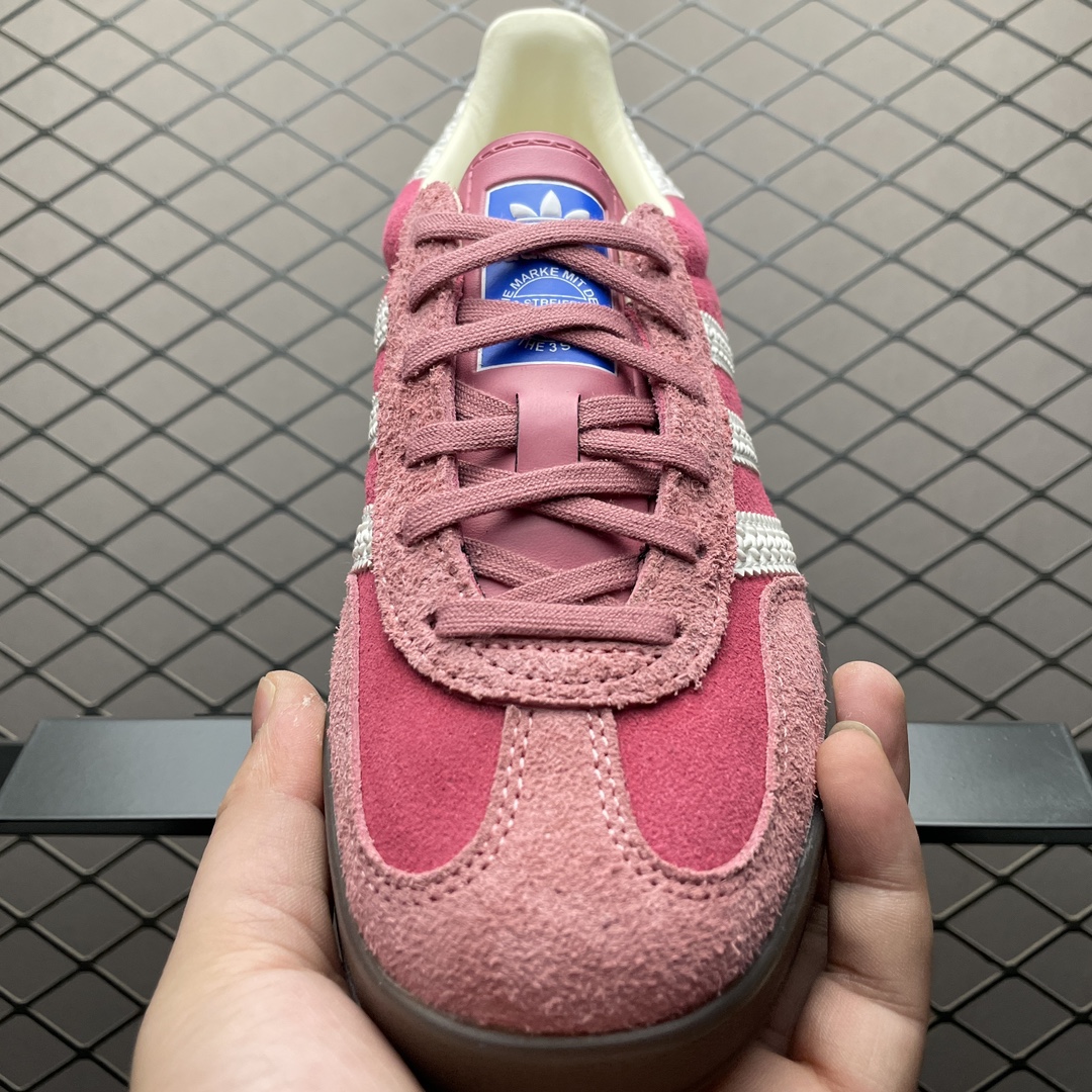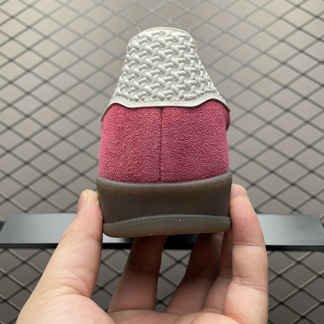Les détails comme le logo Adidas Gazelle doré embossé sur le côté de la chaussure ajoutent une touche de luxe et d’authenticité, tandis que les lacets ton sur ton permettent un ajustement personnalisé et sécurisé.