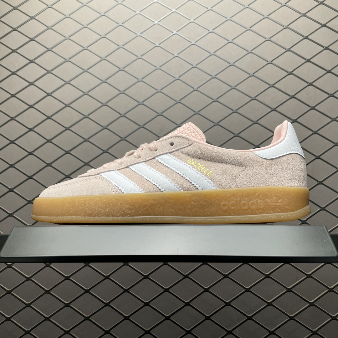 L’adidas Gazelle Indoor Sandy Pink IH5484 est une réinterprétation moderne d’un modèle classique de sneakers, spécialement conçu pour une utilisation en intérieur. Ce modèle se distingue par sa couleur « Sandy Pink », un rose sable doux et attrayant qui couvre la majorité de la chaussure.