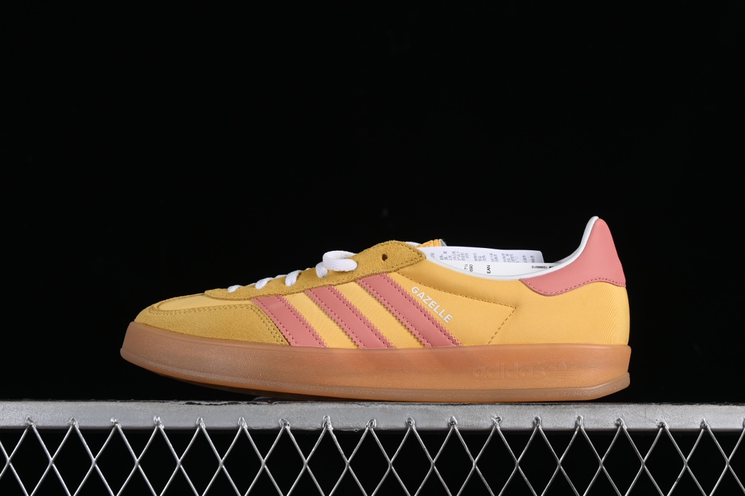 L’Adidas Gazelle Indoor Semi Spark Clay IE2959 est une réinterprétation moderne d’un modèle classique de chaussures de sport, spécialement conçu pour une utilisation en intérieur. Ce modèle se distingue par son design élégant et sa palette de couleurs « Semi Spark Clay », qui offre une combinaison de teintes terreuses avec des accents plus vifs pour un look à la fois discret et attrayant.