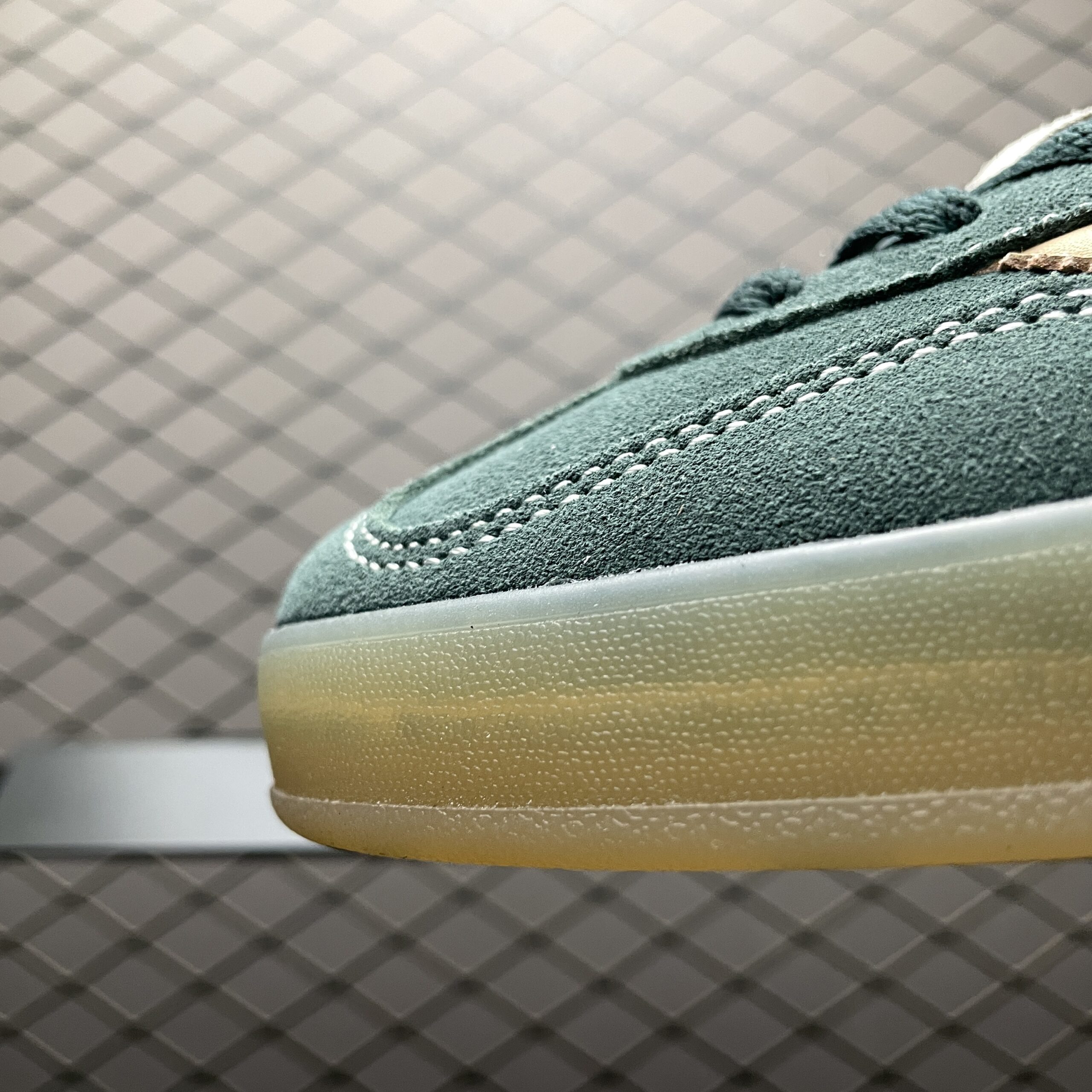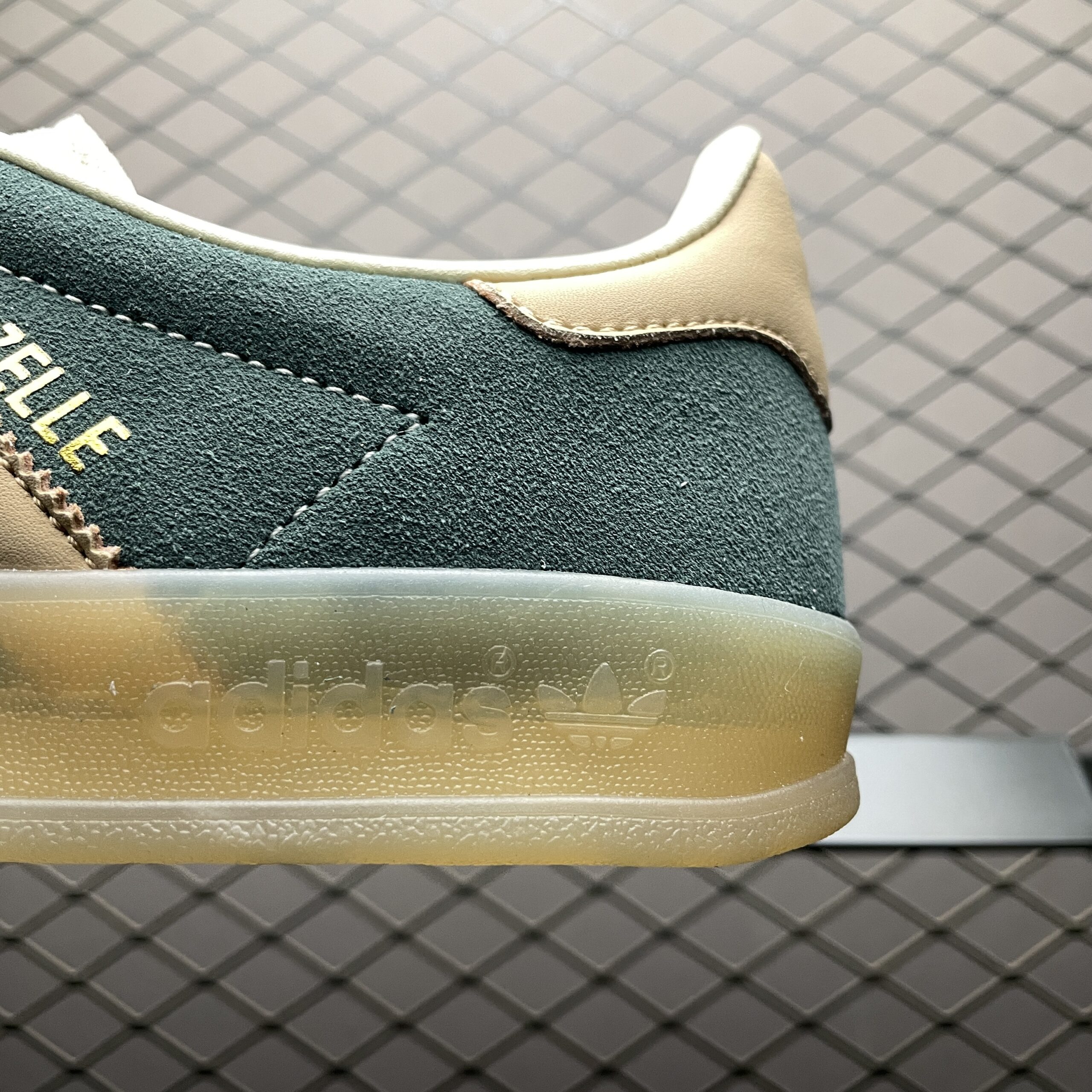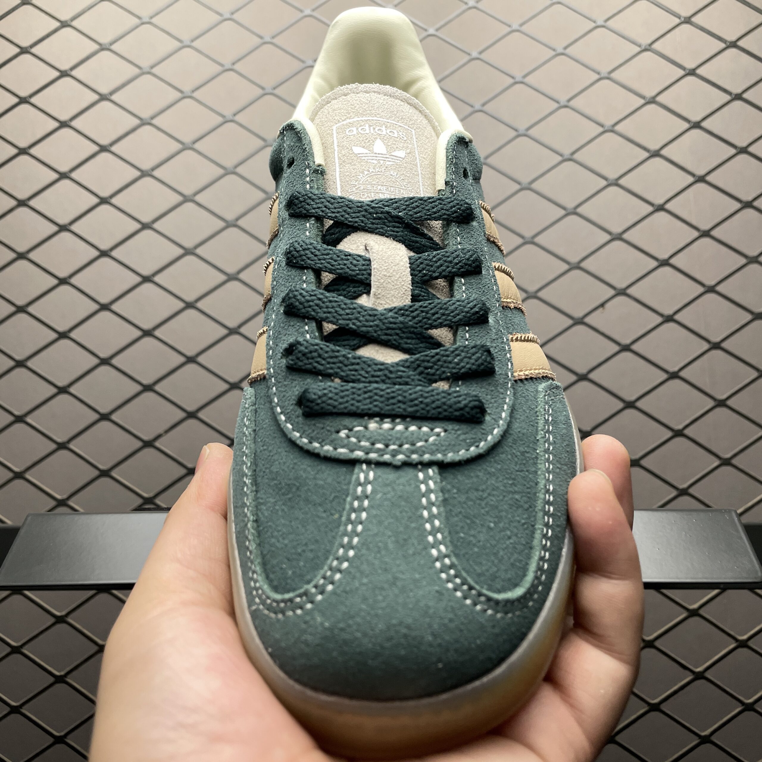 La tige de la chaussure est fabriquée en suède de haute qualité, assurant une durabilité et un toucher doux. Les trois bandes emblématiques d’Adidas, en cuir contrastant, ajoutent une touche classique au design. La languette et le talon arborent également le logo Adidas, soulignant l’authenticité et l’héritage de la marque.