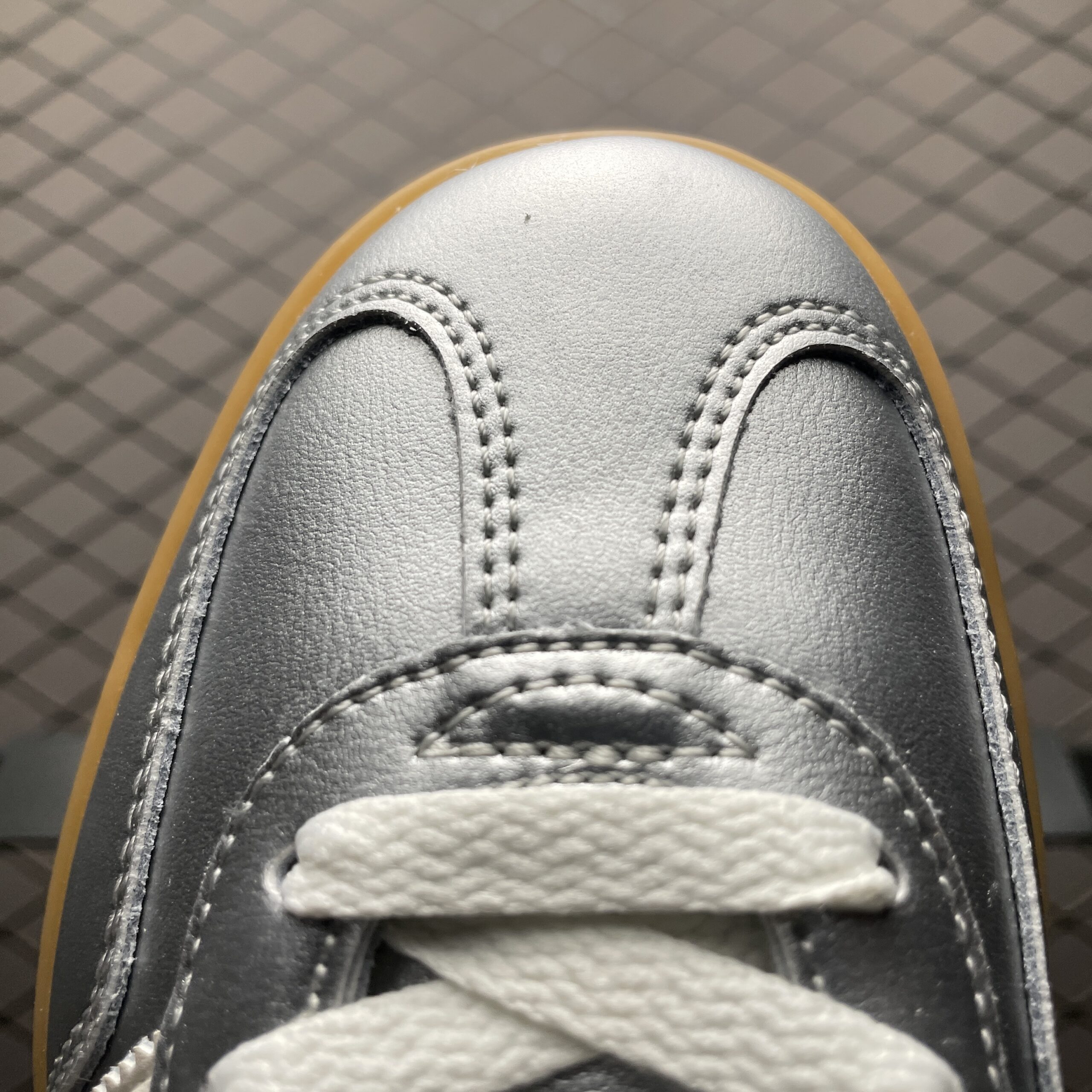La tige de la chaussure est réalisée en cuir de haute qualité avec une finition métallisée argentée, offrant un aspect brillant et sophistiqué. Ce choix de matériau assure non seulement une durabilité accrue, mais également un confort optimal pour un port prolongé. Les trois bandes emblématiques d’Adidas, en blanc éclatant, contrastent harmonieusement avec le fond argenté, ajoutant une touche de dynamisme au design.