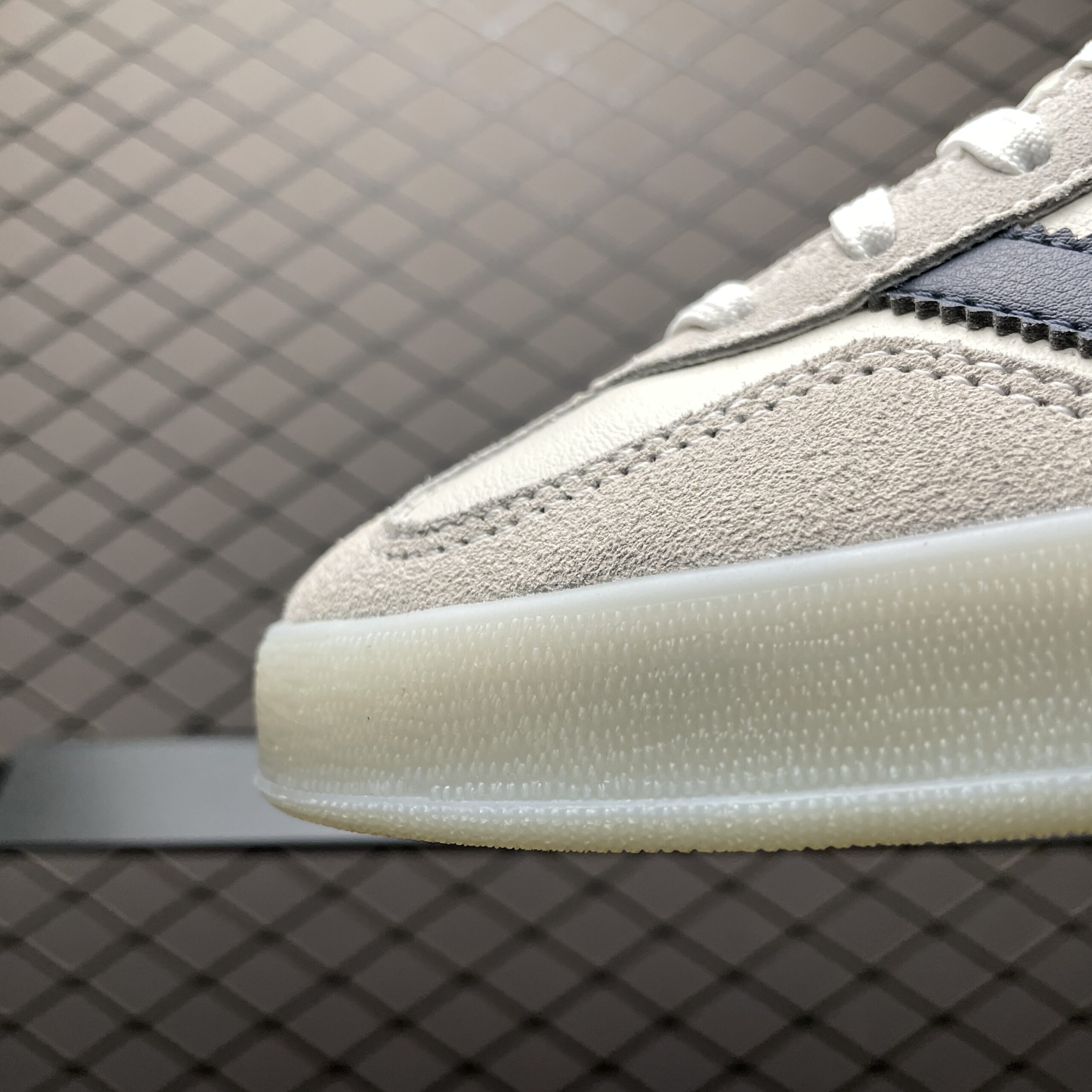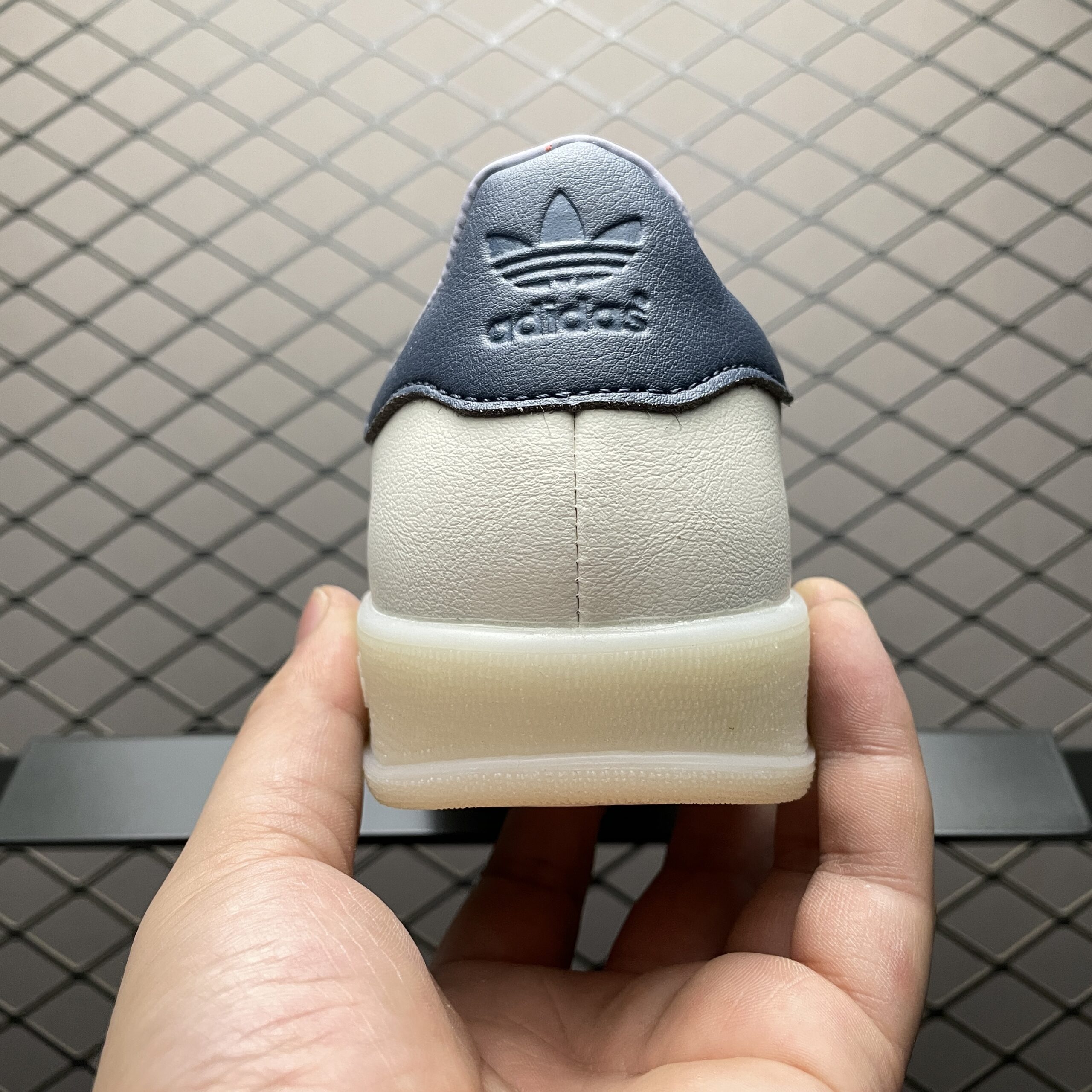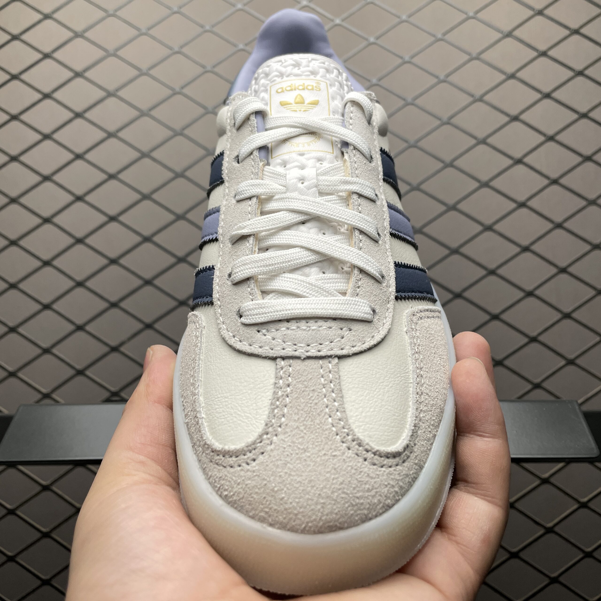 La tige est fabriquée en cuir de haute qualité, offrant durabilité et un aspect premium. La couleur principale de la chaussure est un blanc éclatant, contrasté par des détails en encre (« Ink ») qui ajoutent une touche d’élégance et de subtilité au design. Ces détails peuvent inclure le logo Adidas et les trois bandes emblématiques de la marque.