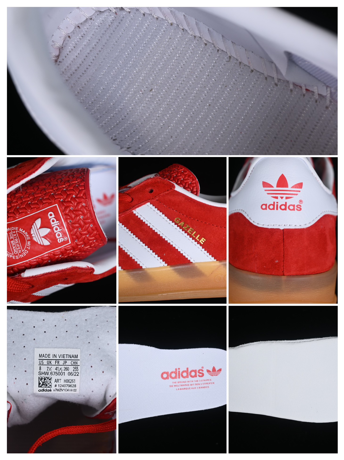 Les Adidas Gazelle Scarlet Cloud White H06261 sont également dotées de détails emblématiques tels que les trois bandes Adidas sur les côtés et le logo du trèfle sur la languette. Ces détails ajoutent une touche de style distinctif à la chaussure, la rendant instantanément reconnaissable.