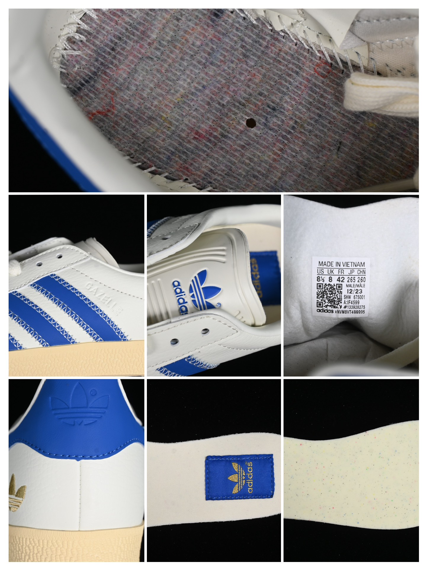La semelle extérieure est en caoutchouc, ce qui assure une bonne adhérence et une longue durabilité. À l’intérieur, la chaussure est équipée d’une doublure douce, augmentant le confort pour une utilisation quotidienne. Le logo de Shoe Palace est subtilement placé sur la languette, tandis que le logo de Gazelle et adidas ornent le talon et la semelle intérieure, respectivement.
