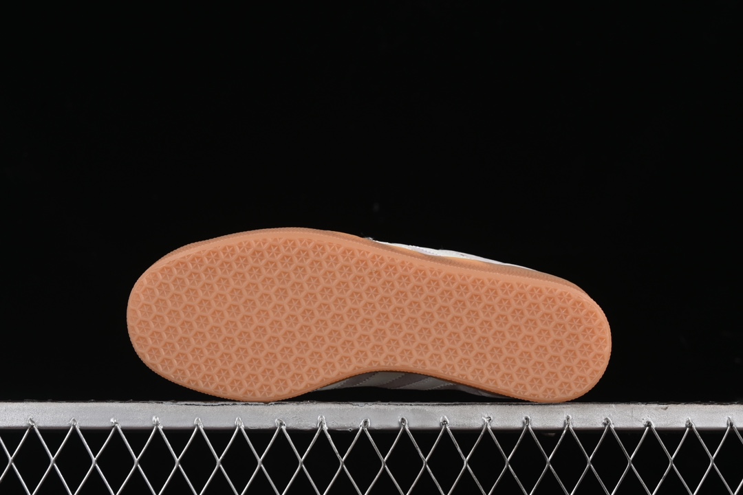 Sur les côtés de la chaussure, les trois bandes emblématiques d’adidas sont présentes, souvent réalisées dans une couleur contrastante pour accentuer le design. Ces bandes peuvent être en cuir ou en matériau synthétique, ajoutant une touche de luxe et de finesse.