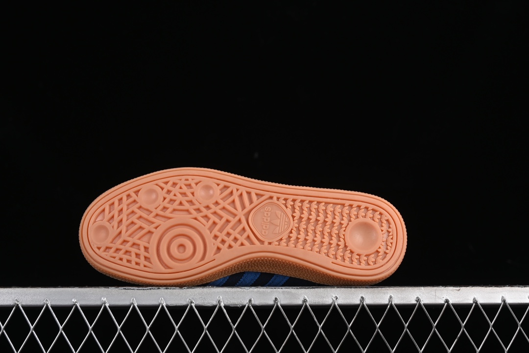 La tige de la chaussure est fabriquée en suède de haute qualité, ce qui lui confère une texture douce et une durabilité accrue. Cette matière permet également une bonne respirabilité, essentielle pour les activités sportives intenses. Le design inclut des bandes adidas emblématiques sur les côtés, en contraste avec le fond indigo, accentuant ainsi son look sportif et dynamique.