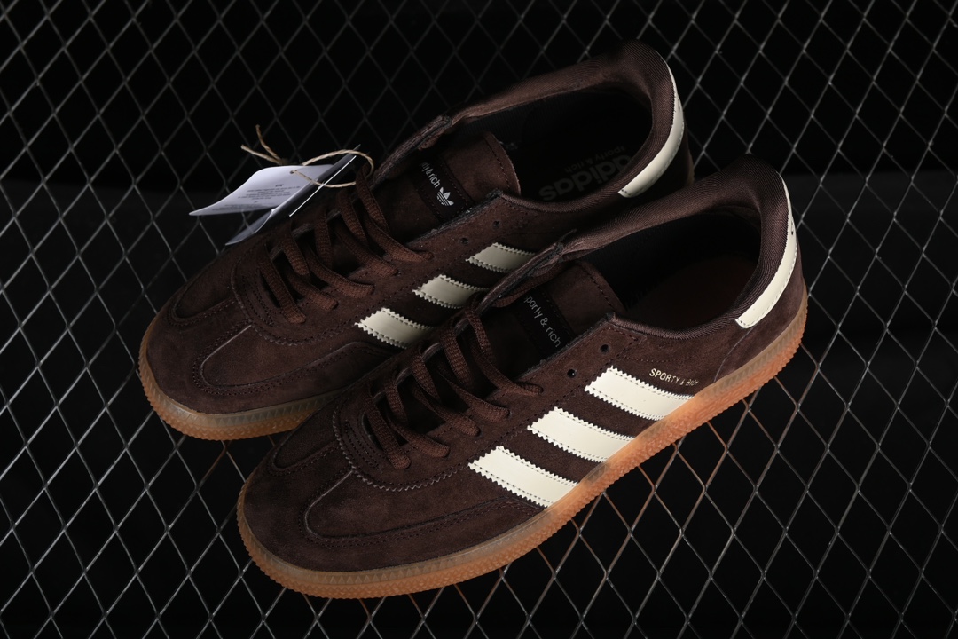 L’adidas Handball Spezial Sporty & Rich Brown IH2612 est une chaussure de sport conçue principalement pour le handball, mais qui peut également être portée comme une sneaker casual. Ce modèle se distingue par sa couleur marron riche, offrant une esthétique élégante et versatile.