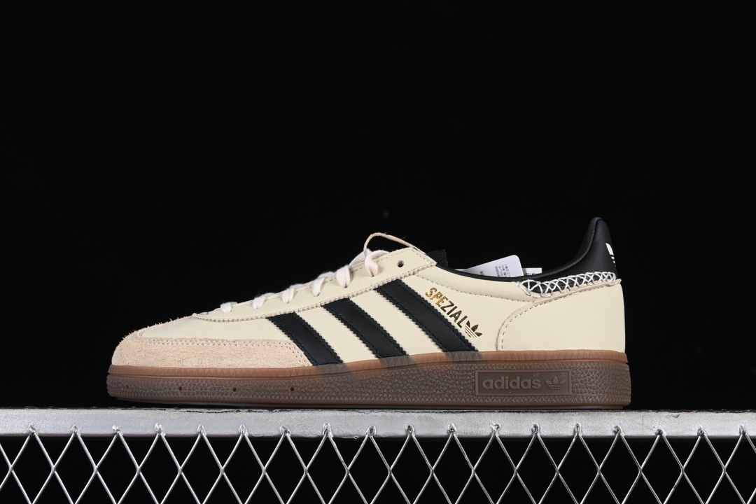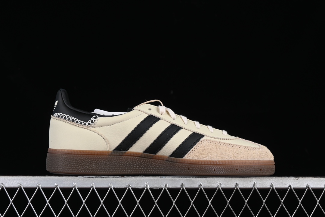 L’adidas Handball Spezial Wonder White Black IE3698 est une chaussure de sport conçue principalement pour le handball, mais qui peut également être utilisée pour diverses activités sportives ou comme sneaker casual. Ce modèle est une réédition moderne des chaussures classiques de handball des années 1970, offrant à la fois un style rétro et des fonctionnalités contemporaines.