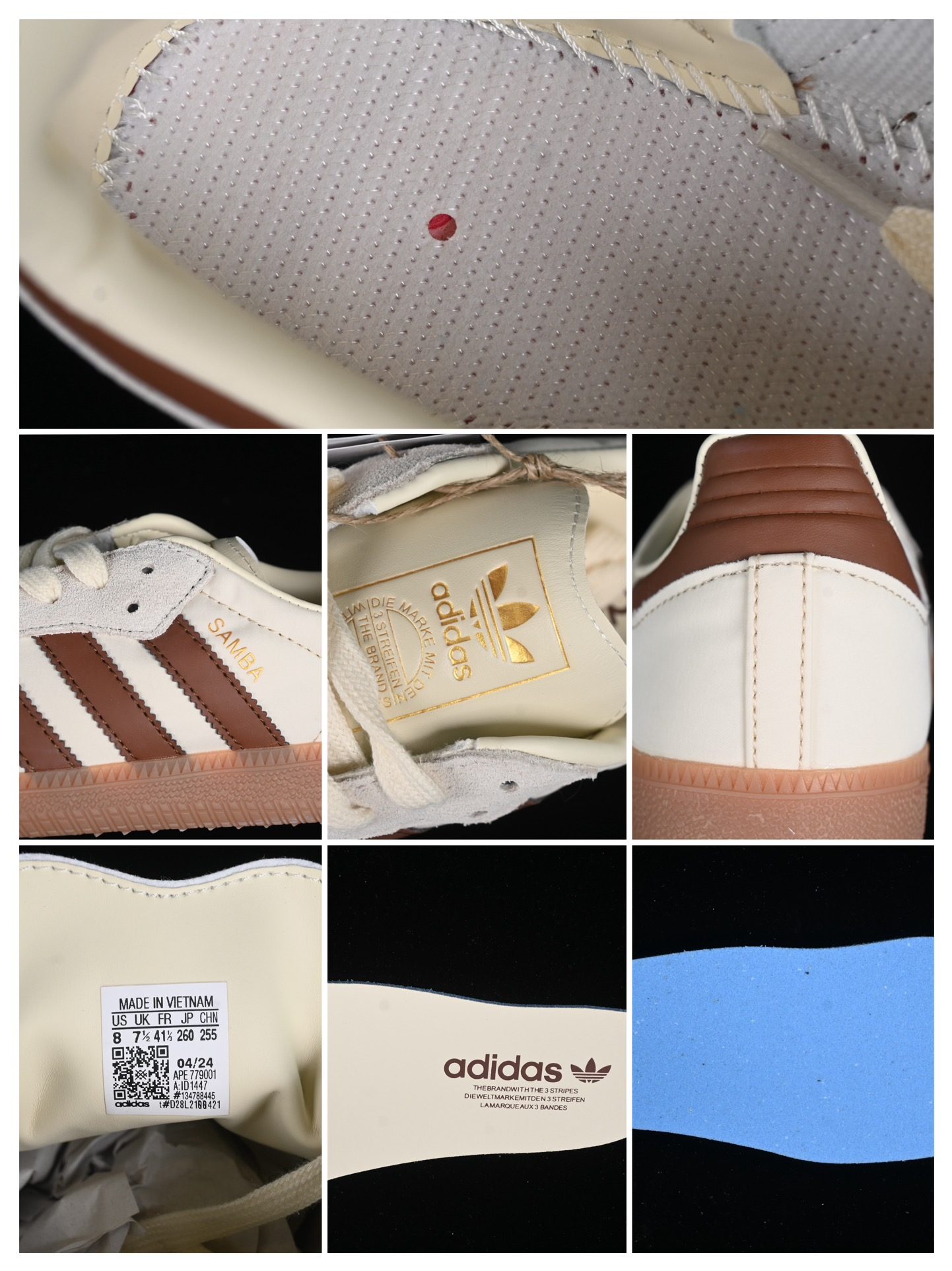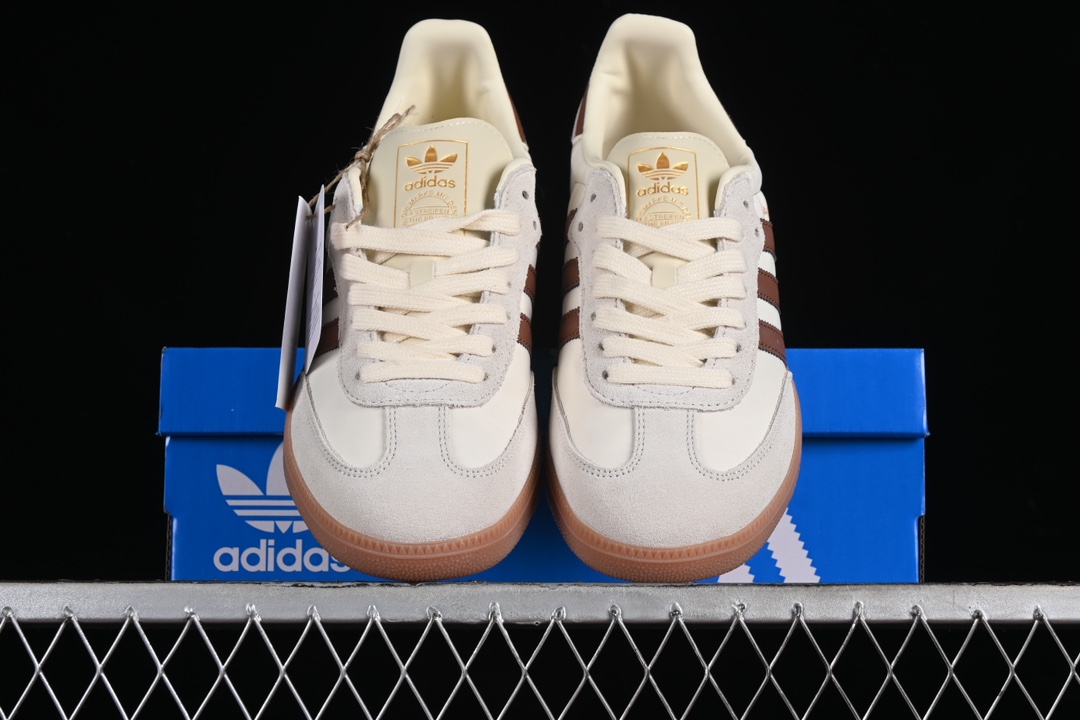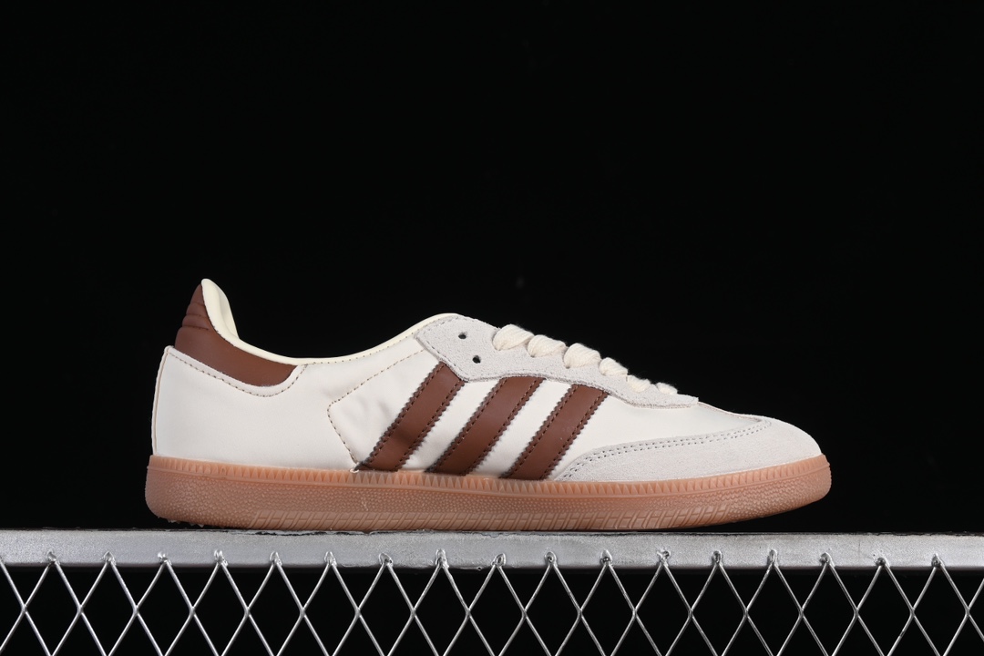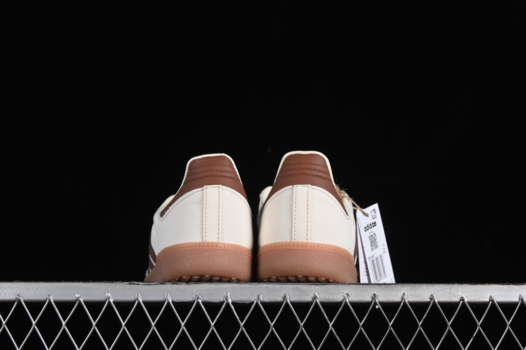 Les chaussures adidas Samba OG Cream White Preloved Brown sont un mélange parfait de style rétro et de confort moderne. Dotées d’une tige en cuir premium de couleur crème avec des détails marron, ces sneakers dégagent une allure vintage et tendance. La semelle intermédiaire en EVA offre un amorti optimal pour un confort durable, tandis que la semelle extérieure en caoutchouc assure une adhérence fiable. Que ce soit pour une tenue décontractée ou un look streetwear sophistiqué, les adidas Samba OG sont un incontournable pour les amateurs de mode urbaine.