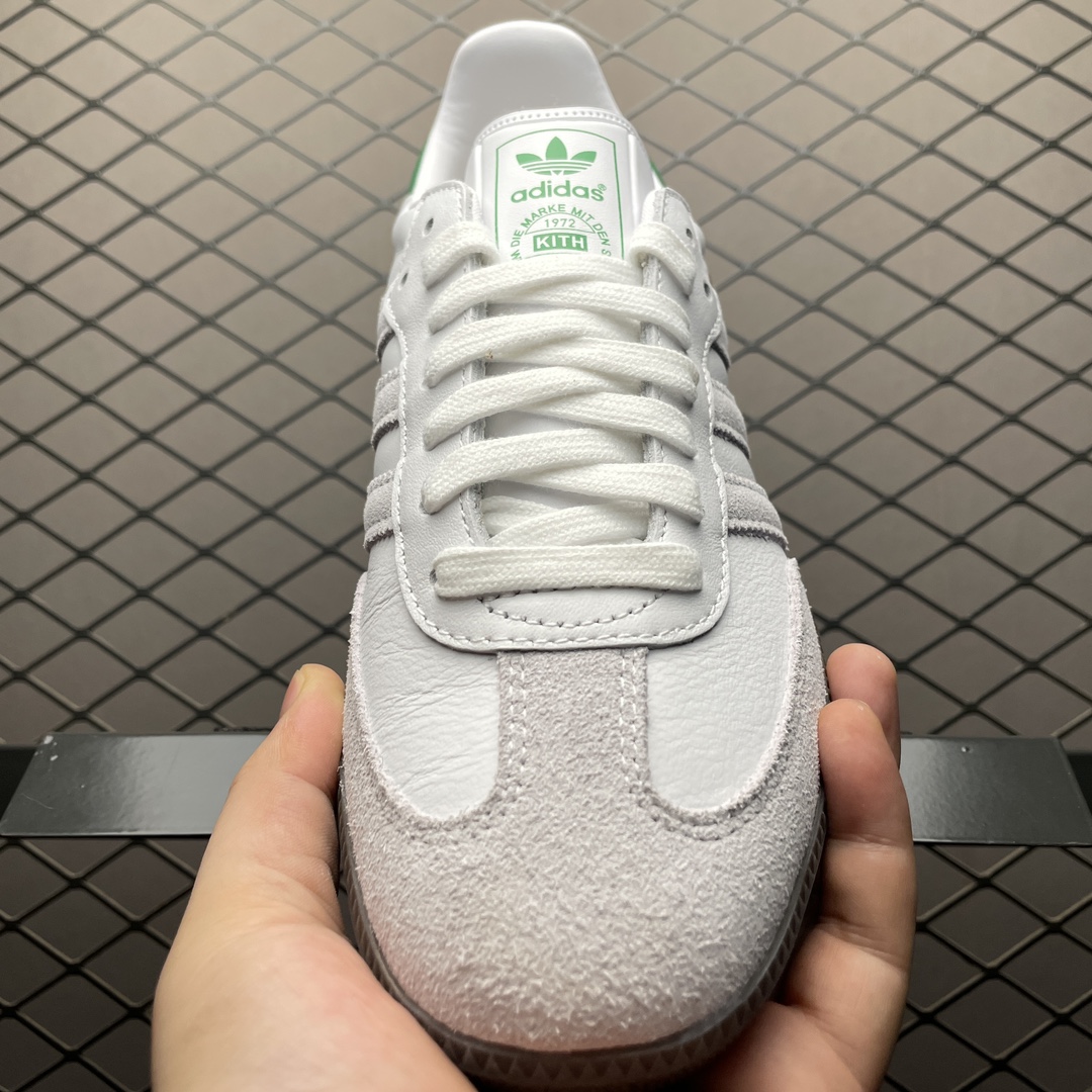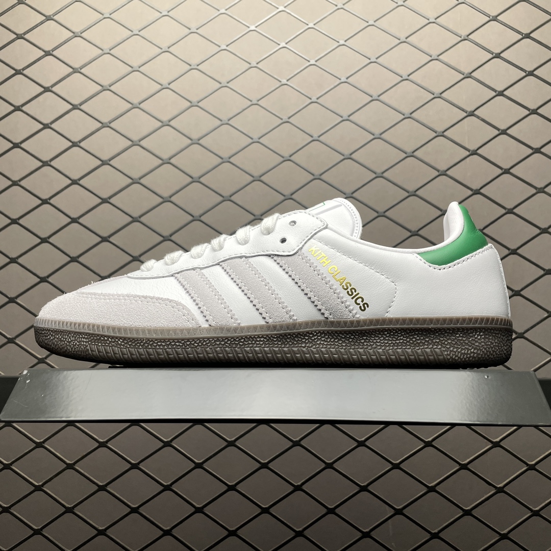 En résumé, la adidas Samba OG Kith Classics White Green FX5398 combine le style rétro de la Samba avec des finitions modernes et exclusives, ce qui en fait un produit à la fois stylé et confortable, parfait pour les amateurs de sneakers et les collectionneurs.
