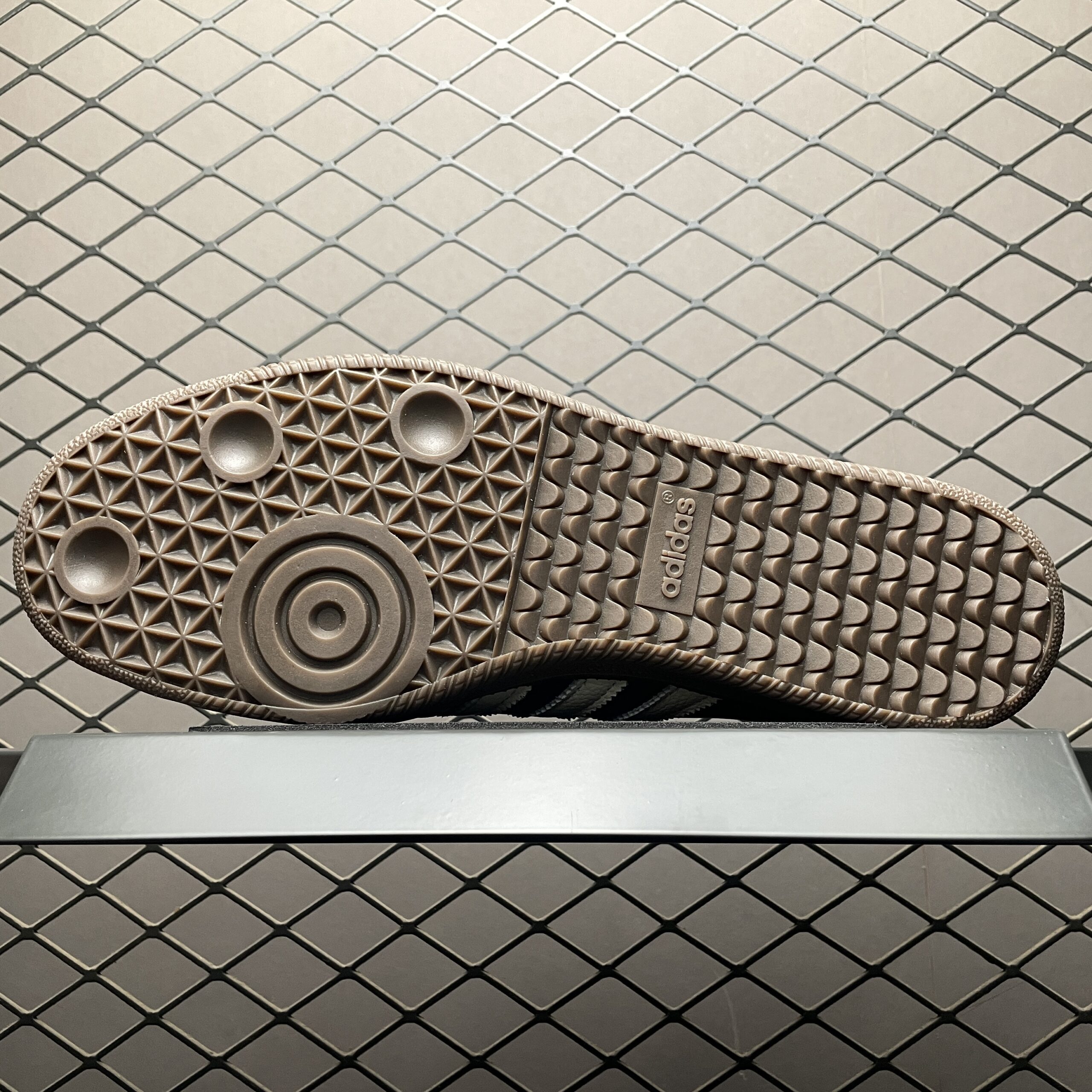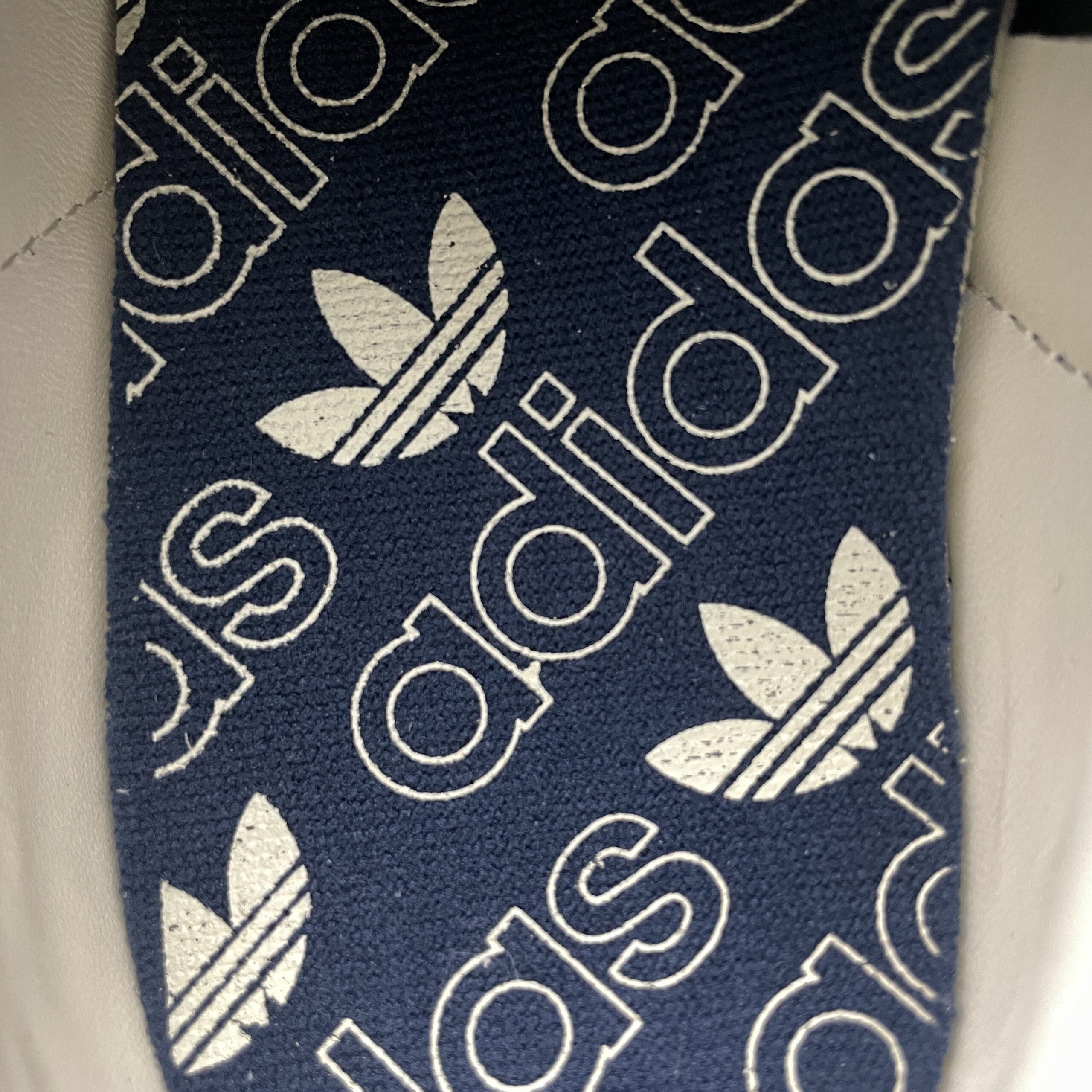 La tige est fabriquée en cuir de haute qualité, offrant à la fois durabilité et confort. Les empiècements en suède sur le bout et le talon ajoutent une touche de texture et de raffinement, tout en renforçant les zones sujettes à l’usure. Les trois bandes emblématiques d’adidas, en blanc contrastant, s’étendent sur les côtés, soulignant l’héritage sportif de la chaussure.