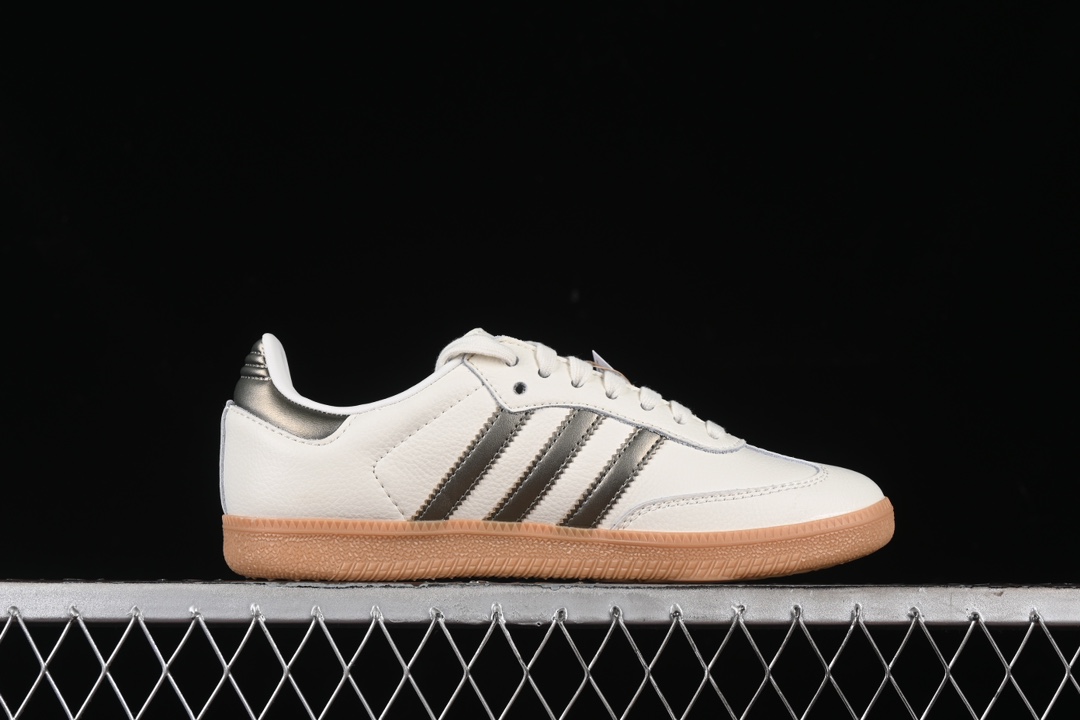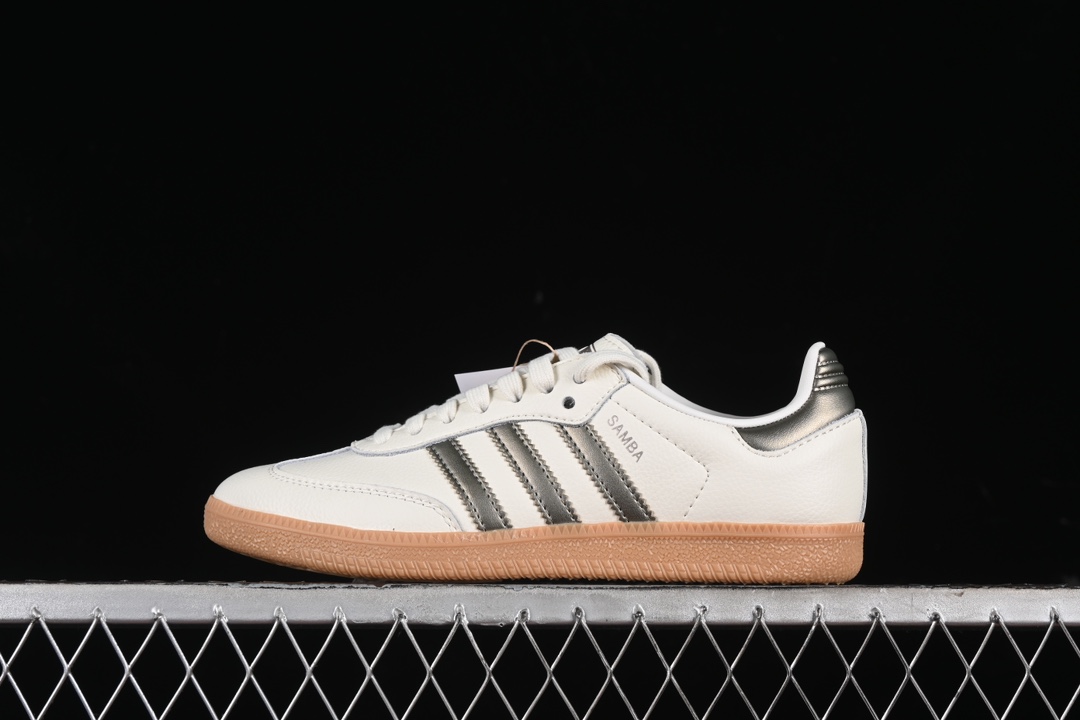 L’adidas Samba OG Wonder Gold Metallic IG1964 est une version moderne et stylisée de la célèbre chaussure de football Samba, originellement lancée par adidas dans les années 1950. Ce modèle particulier se distingue par son design élégant et ses finitions de haute qualité.