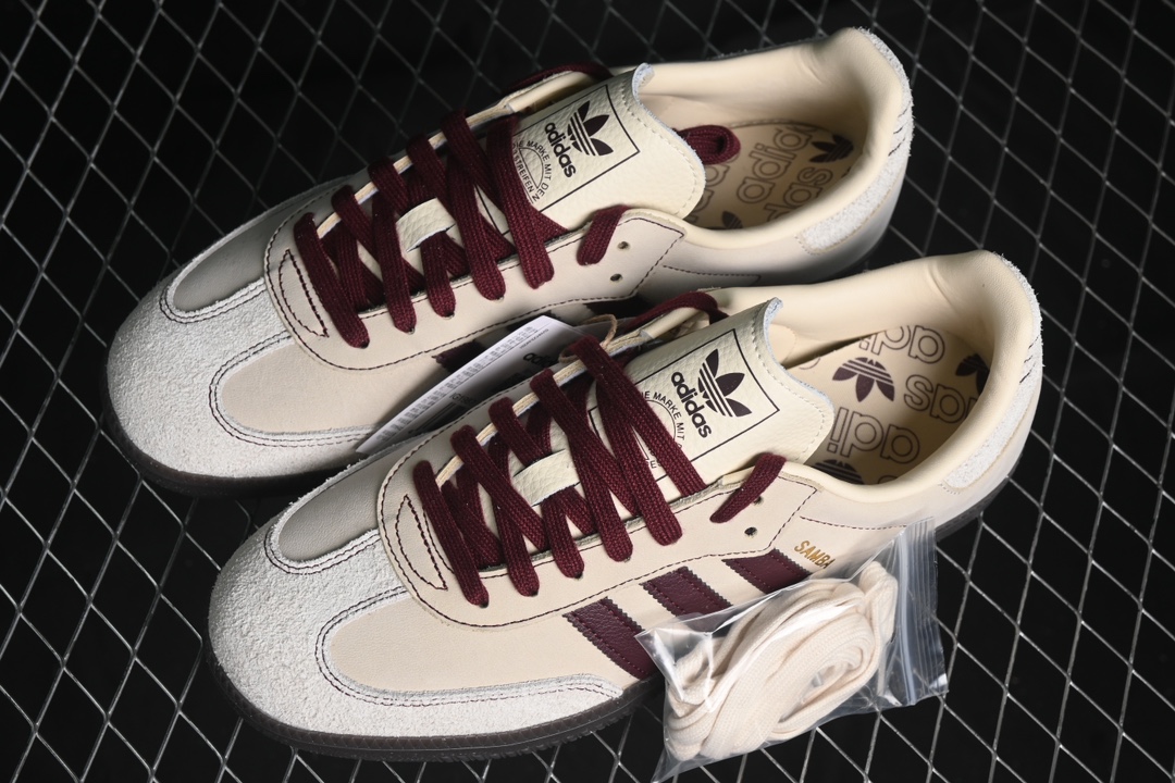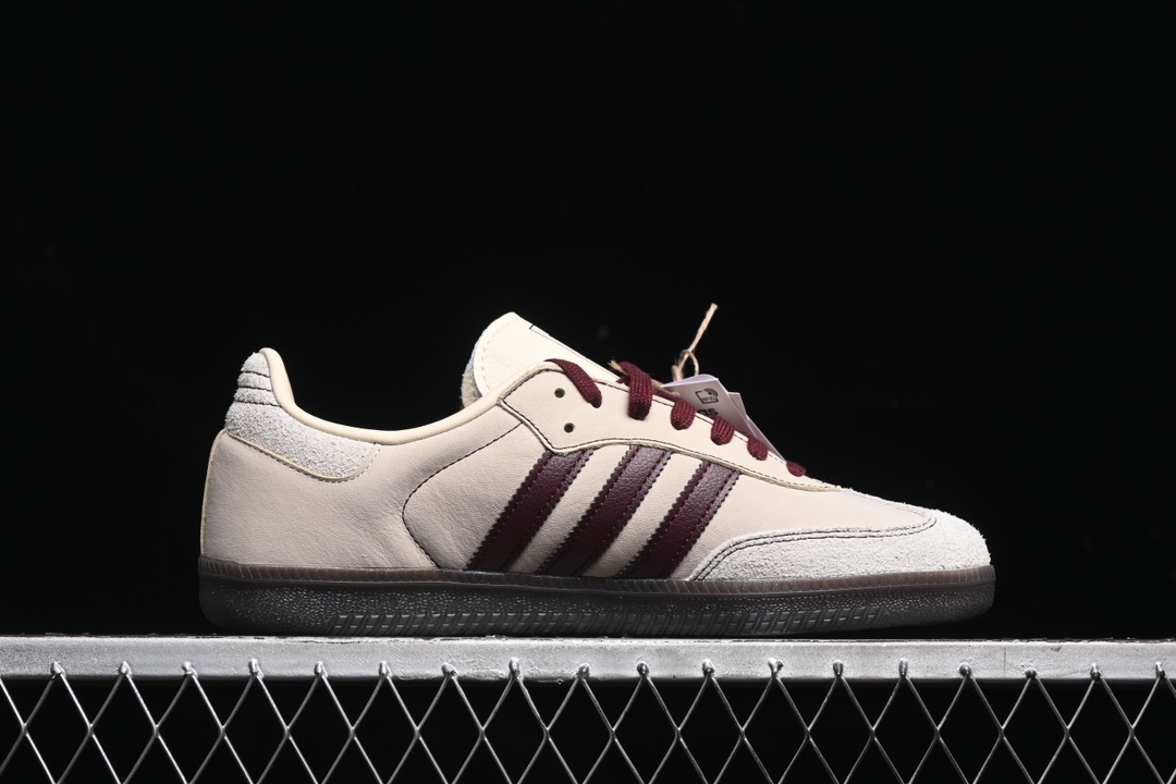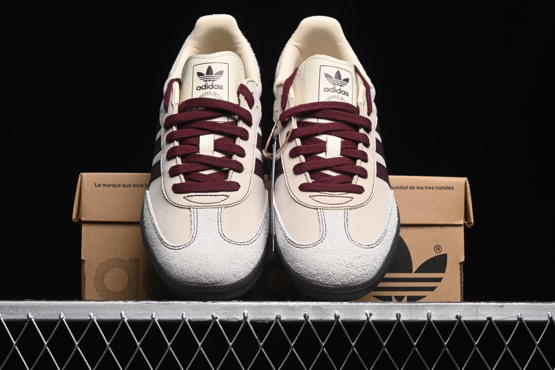 Les chaussures adidas Samba OG Wonder White Maroon sont un mélange parfait d’élégance et de style sportif. Conçues pour les passionnés de mode et les adeptes du streetwear, ces sneakers offrent un look rétro emblématique avec une touche moderne. Dotées d’une tige en cuir blanc et de détails maroon, elles apportent une touche de couleur subtile à n’importe quelle tenue. Confortables et durables, ces chaussures sont idéales pour une utilisation quotidienne ou pour compléter un ensemble décontracté. Que ce soit pour une sortie en ville ou une journée de détente, les adidas Samba OG Wonder White Maroon sauront vous accompagner avec style.