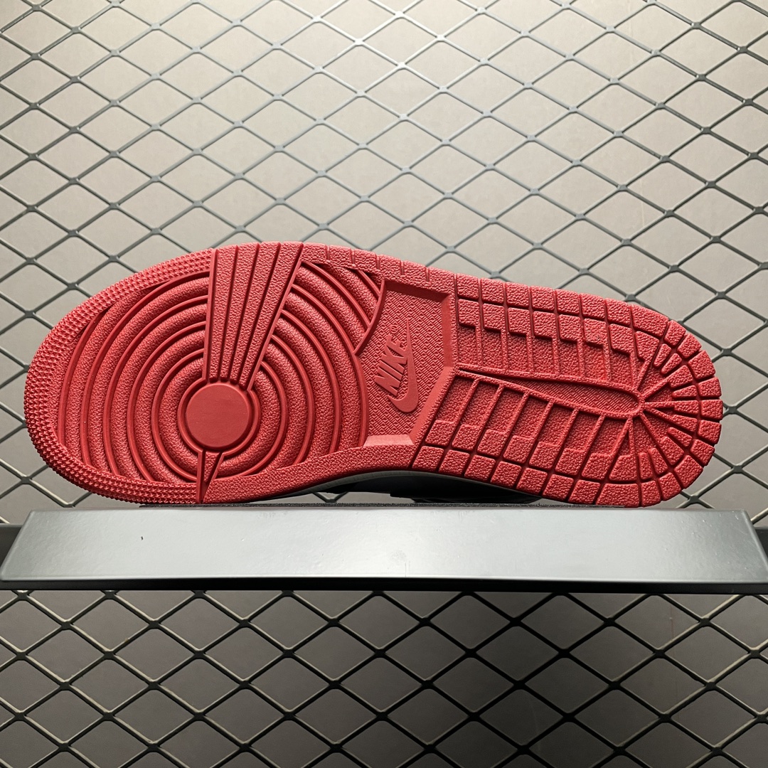 La chaussure présente une combinaison de couleurs classique avec une base en cuir blanc. Les empiècements avant et les perforations sur la toe box sont également en blanc, tandis que les renforts autour de l’avant-pied, du talon et de la cheville arborent un cuir de couleur noire, d’où le nom « Black Toe ». Le Swoosh emblématique de Nike sur les côtés est en rouge, complétant ainsi le trio de couleurs iconique.