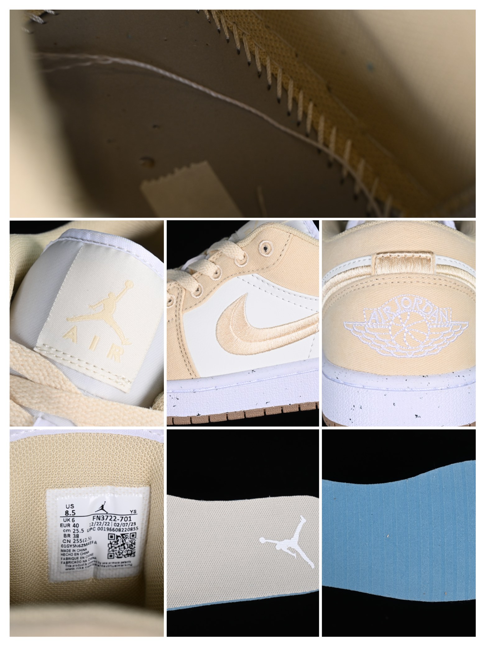 La Air Jordan 1 Low SE « Canvas » White/Tan FN3722-701 est une chaussure de sport de haute qualité conçue pour les amateurs de basket-ball et les fans de la marque Jordan. Elle est fabriquée avec une tige en toile blanche et des accents en cuir beige, ce qui lui donne un look élégant et décontracté. La semelle intermédiaire en mousse offre un amorti confortable pour les pieds, tandis que la semelle extérieure en caoutchouc assure une adhérence optimale sur les surfaces de jeu. La chaussure est également équipée d’un système de laçage traditionnel pour un ajustement personnalisé et une stabilité accrue. Avec son design classique et sa qualité de fabrication supérieure, la Air Jordan 1 Low SE « Canvas » White/Tan FN3722-701 est un choix idéal pour les joueurs de basket-ball et les amateurs de sneakers.