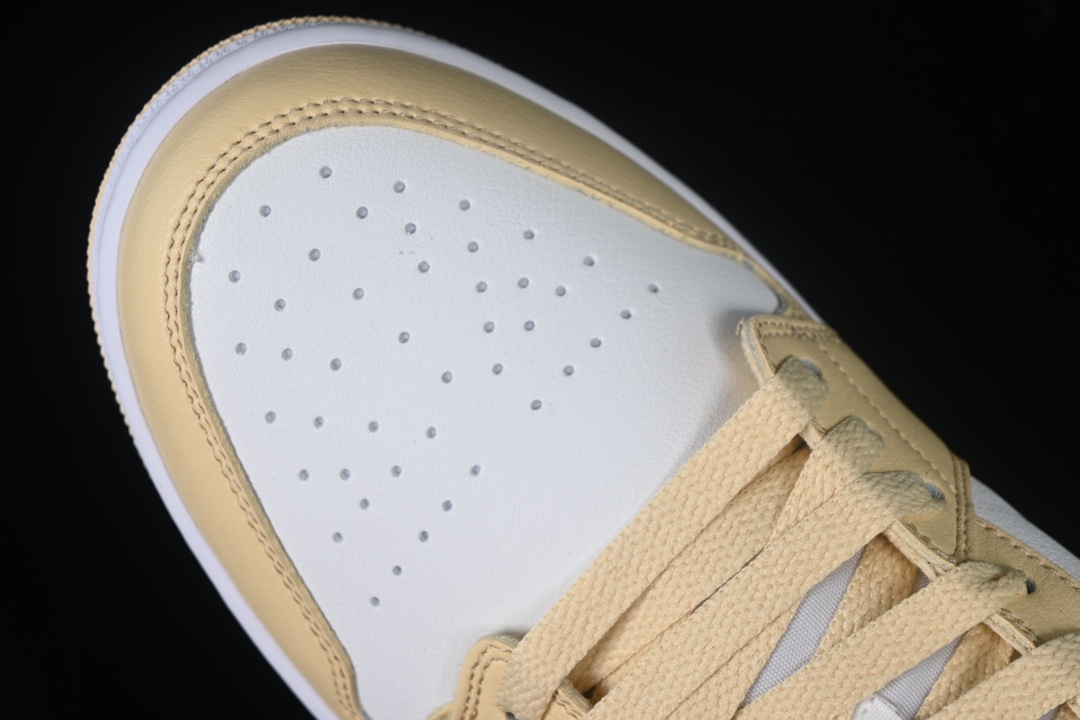 La Air Jordan 1 Low « Team Gold » présente une tige en cuir de première qualité dans une teinte dorée, qui lui confère une allure luxueuse et élégante. Les détails en cuir noir contrastant ajoutent une touche de sophistication supplémentaire, tandis que le logo Jumpman emblématique sur la languette et le talon rappelle l’héritage de la marque.