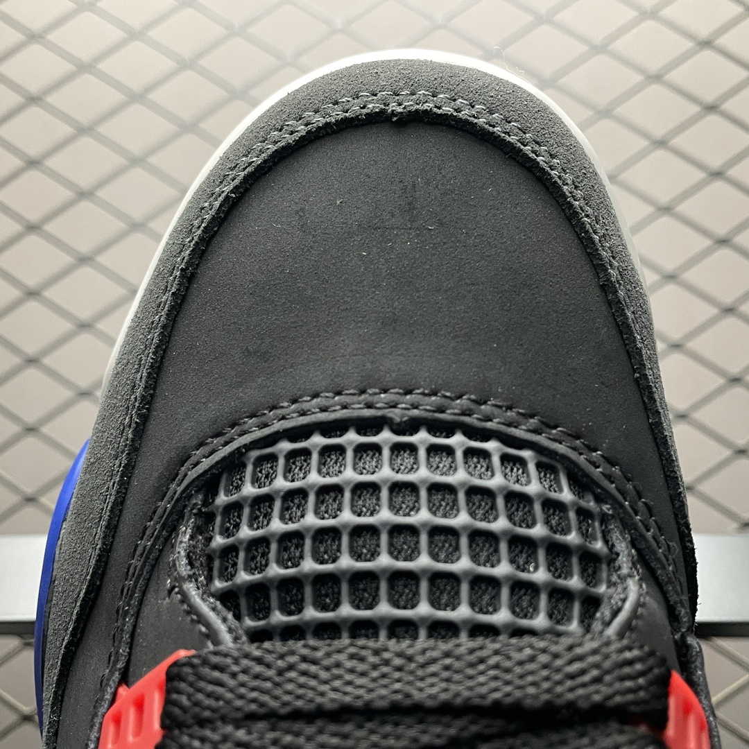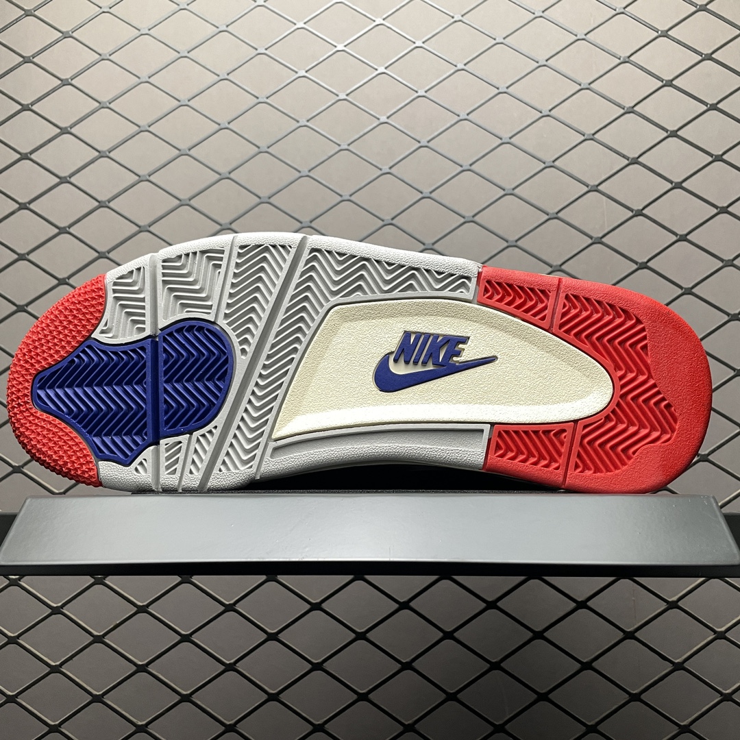 Les éléments de design emblématiques de la Air Jordan 4, tels que les ailes latérales en plastique et le filet sur les panneaux latéraux, sont présents, renforçant l’héritage de la marque tout en apportant une touche contemporaine. Le logo Jumpman, symbole iconique de la ligne Jordan, est fièrement affiché sur la languette et le talon, soulignant l’authenticité et le prestige de cette édition.