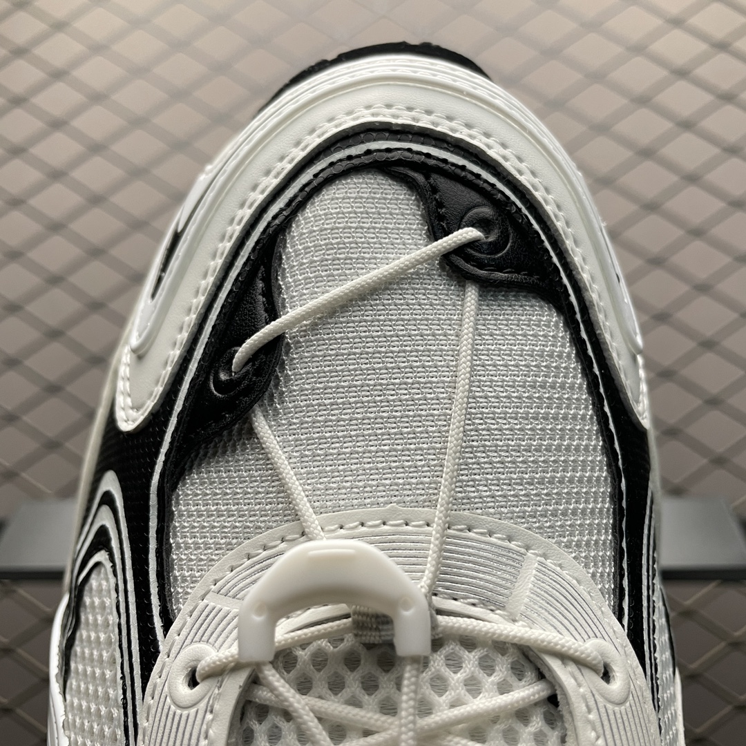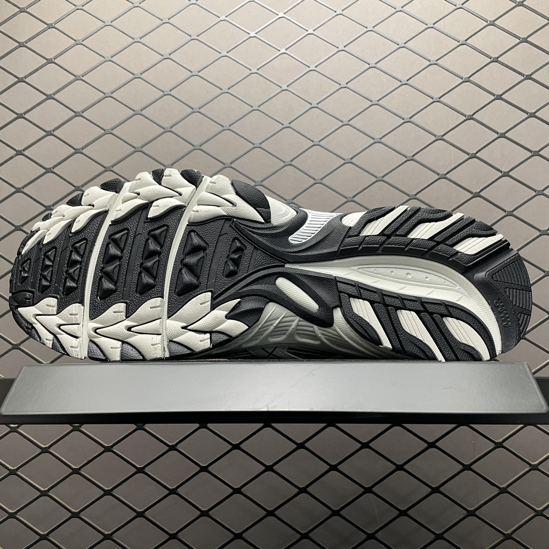 Le design de la chaussure est élégant avec une dominante de noir contrastée par des détails en blanc, ce qui lui donne un look moderne et versatile. Le modèle est également équipé de détails réfléchissants pour une meilleure visibilité lors des courses dans des conditions de faible luminosité.