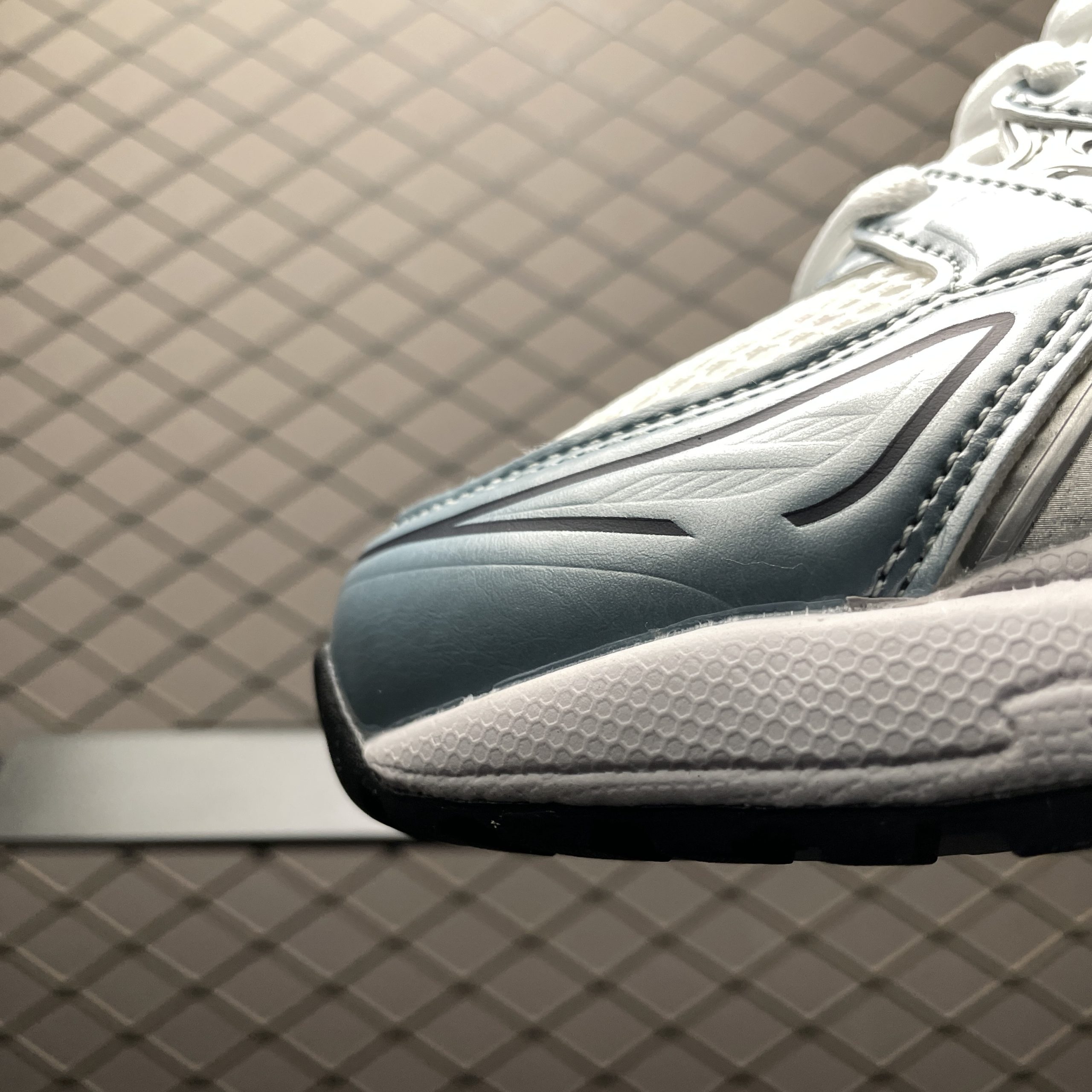 La tige de la chaussure est fabriquée à partir de matériaux synthétiques et de mesh, assurant une respirabilité optimale et un ajustement confortable. La combinaison de blanc et de gris fjord confère à la chaussure un look épuré et polyvalent, idéal pour les coureurs et les amateurs de mode urbaine.
