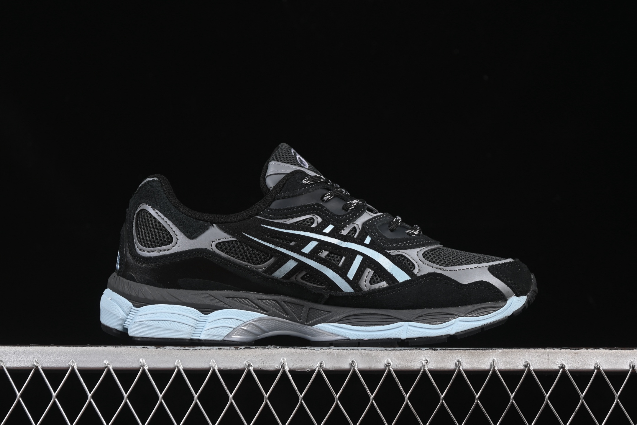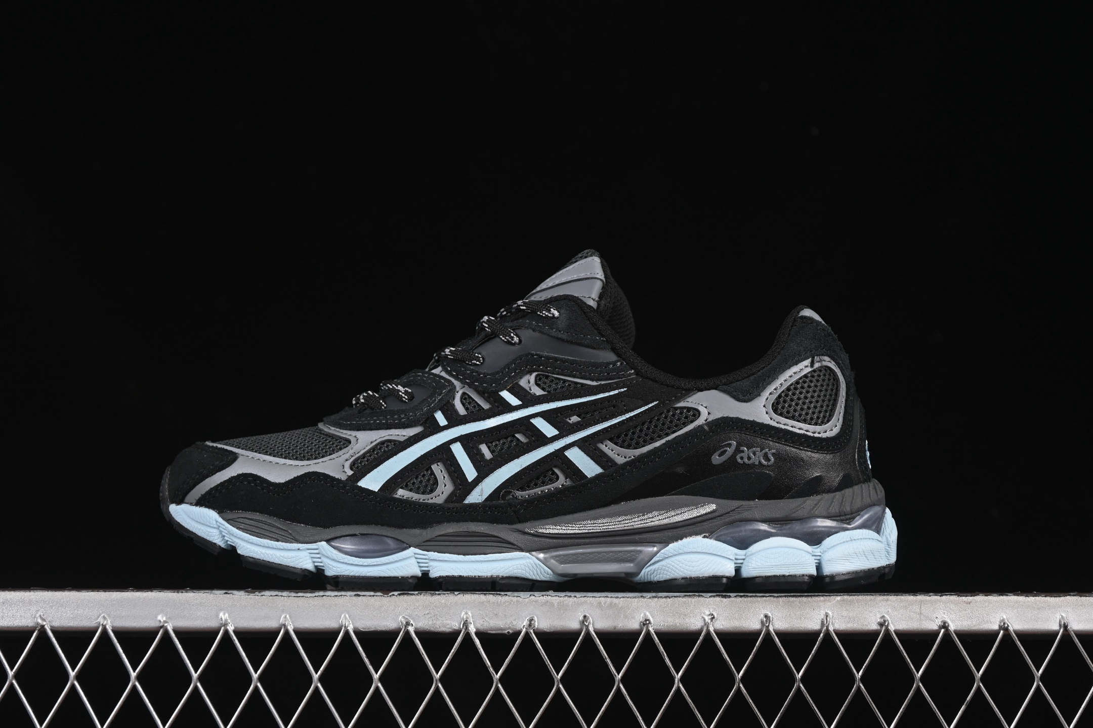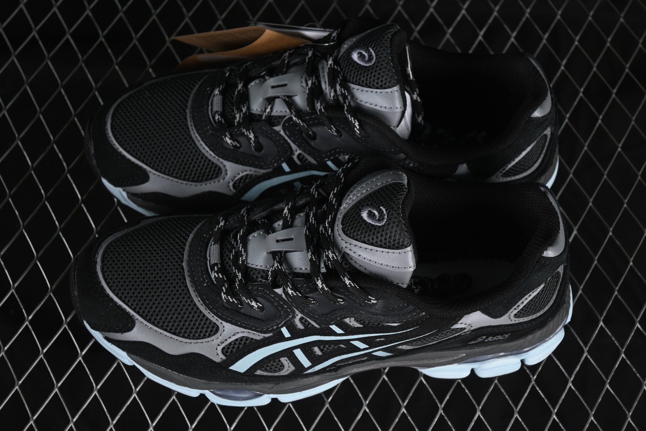 Le design de la ASICS Gel-NYC atmos Laguna Gem Blue Topaz est complété par des détails réfléchissants, augmentant la visibilité dans des conditions de faible luminosité. Les logos ASICS et atmos sont subtilement intégrés, soulignant l’authenticité et l’exclusivité de cette collaboration.