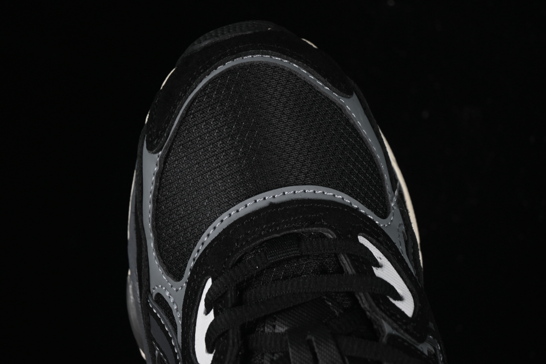 La tige de la chaussure est fabriquée en matériaux synthétiques et en mesh, offrant une respirabilité optimale et un ajustement confortable. La couleur noire intégrale confère à la chaussure un look sobre et élégant, idéal pour ceux qui préfèrent un style discret mais sophistiqué.