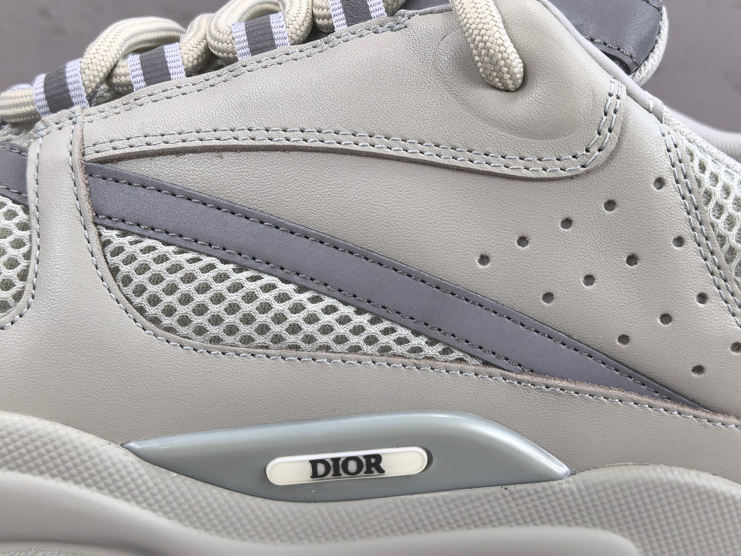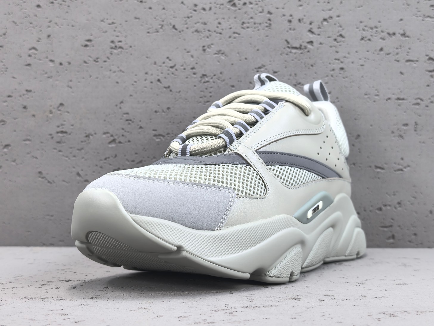 Les détails supplémentaires incluent le logo « Dior » placé subtilement sur le côté, affirmant discrètement l’identité de marque. Les lacets robustes permettent un ajustement sécurisé et personnalisable.