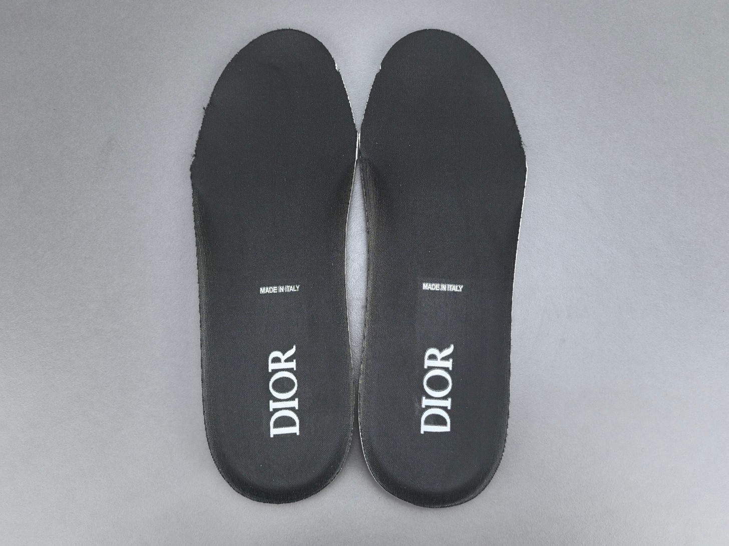 Le logo Dior est subtilement placé, souvent sur la languette, le côté ou le talon, affirmant discrètement l’identité de marque. Les lacets, en harmonie avec le design global, complètent le look tout en assurant un ajustement sûr et personnalisable.