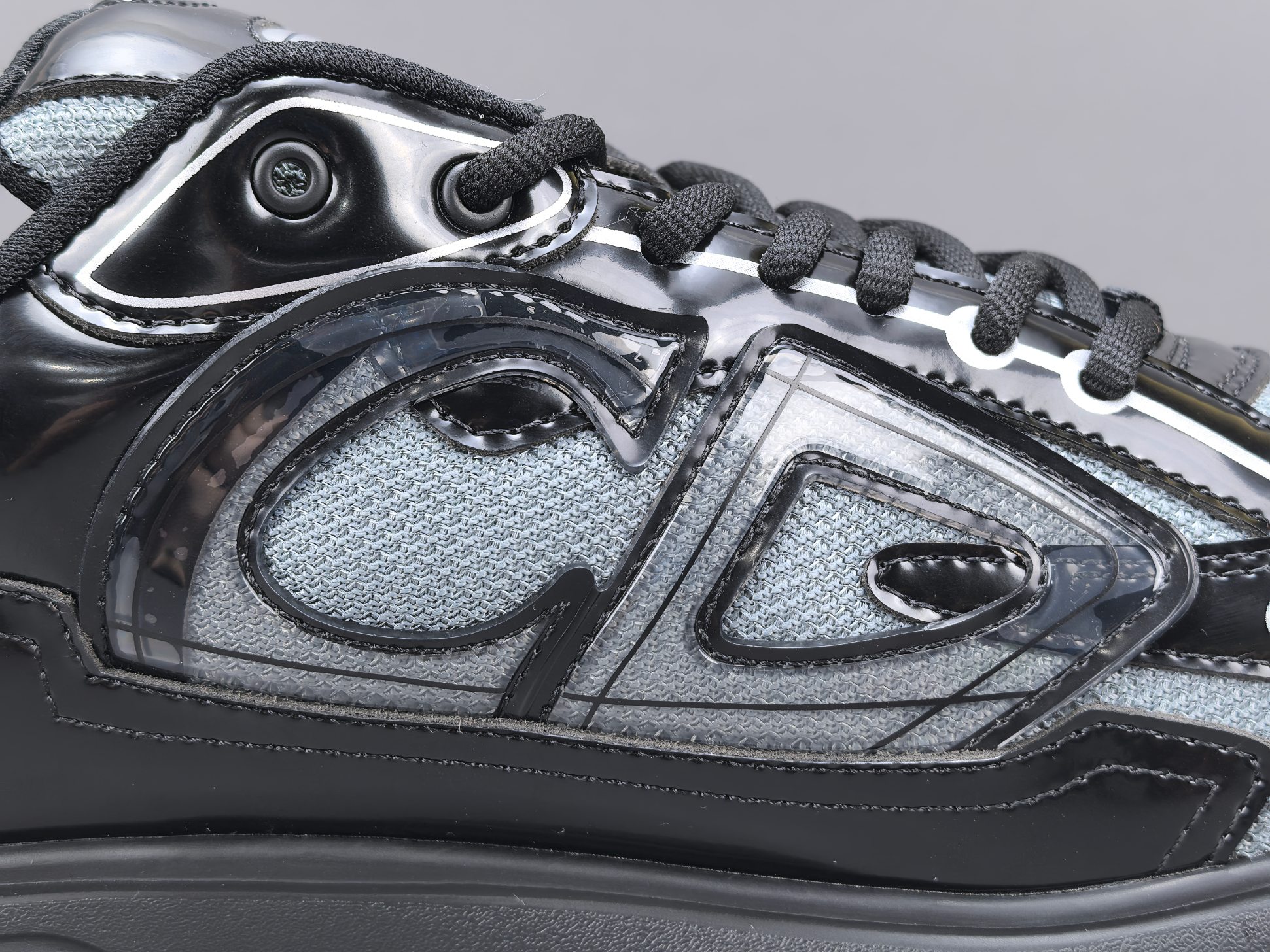 La sneaker arbore une palette de couleurs raffinée, combinant des nuances de gris clair et de noir, ce qui lui confère une allure à la fois sobre et contemporaine. La tige est réalisée en matériaux de haute qualité, assurant durabilité et confort. Les détails en cuir et en tissu technique ajoutent une touche de sophistication et de texture, tandis que le logo Dior est subtilement intégré, témoignant de l’authenticité et du prestige de la marque.
