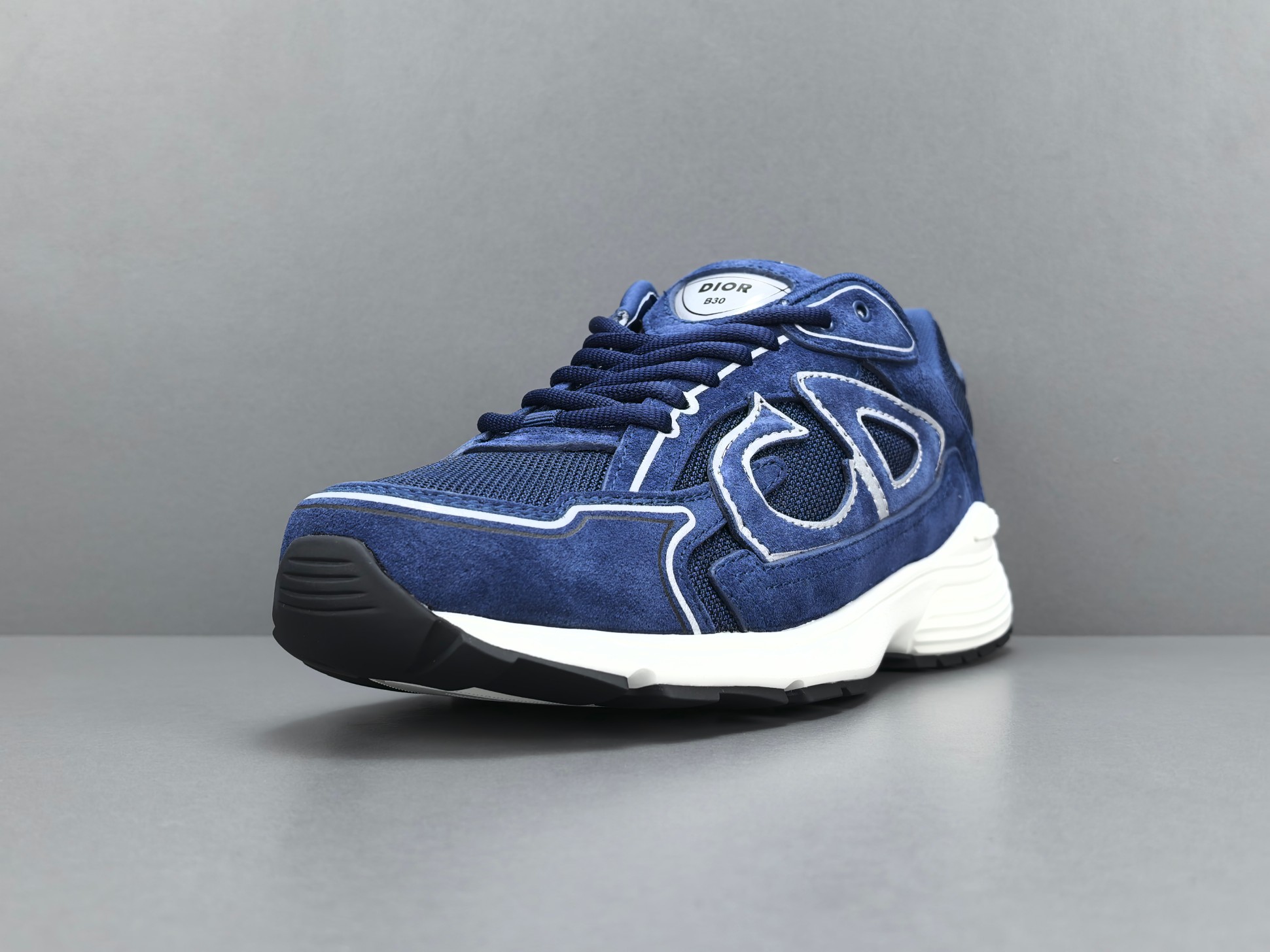 La semelle en caoutchouc assure un confort optimal et une adhérence parfaite, tandis que l’intérieur est doublé pour un ajustement confortable tout au long de la journée. Le logo Dior est discrètement apposé, ajoutant une touche de prestige sans ostentation. Ces sneakers sont parfaites pour ceux qui recherchent un style intemporel avec une touche de modernité, s’intégrant facilement dans une garde-robe chic et urbaine. Que ce soit pour une sortie décontractée ou une occasion spéciale, le Dior B30 Navy Blue Suede est un choix de premier ordre pour les amateurs de mode exigeants.