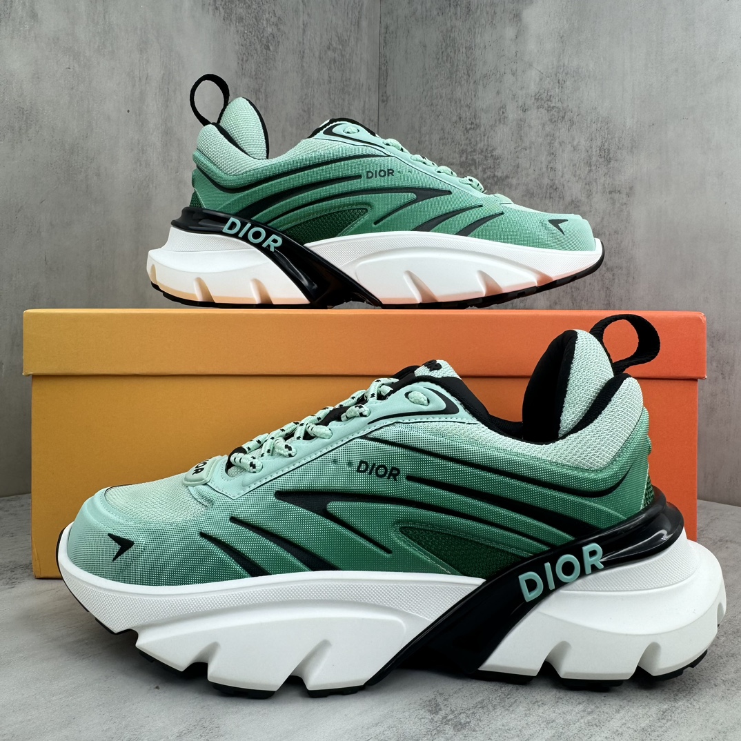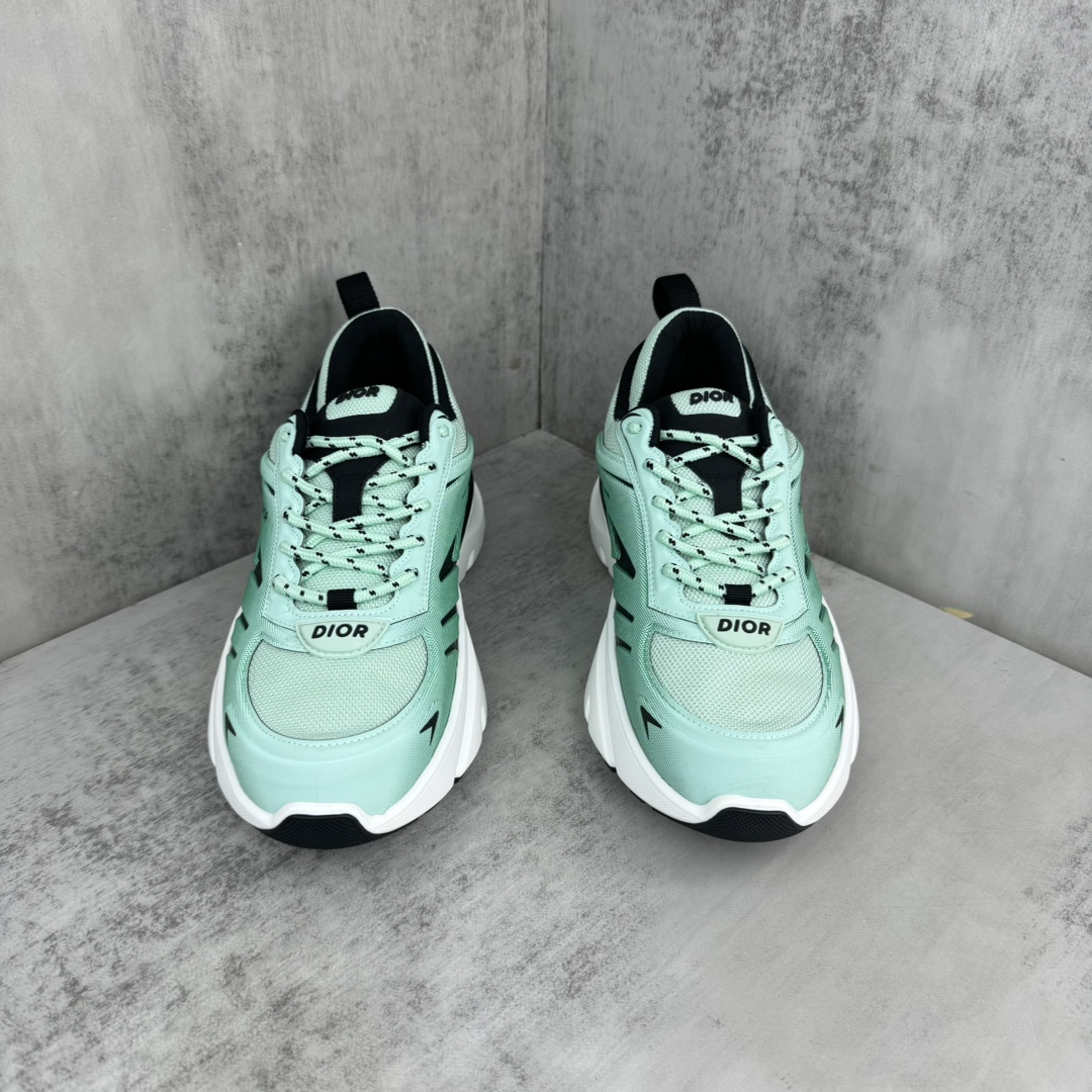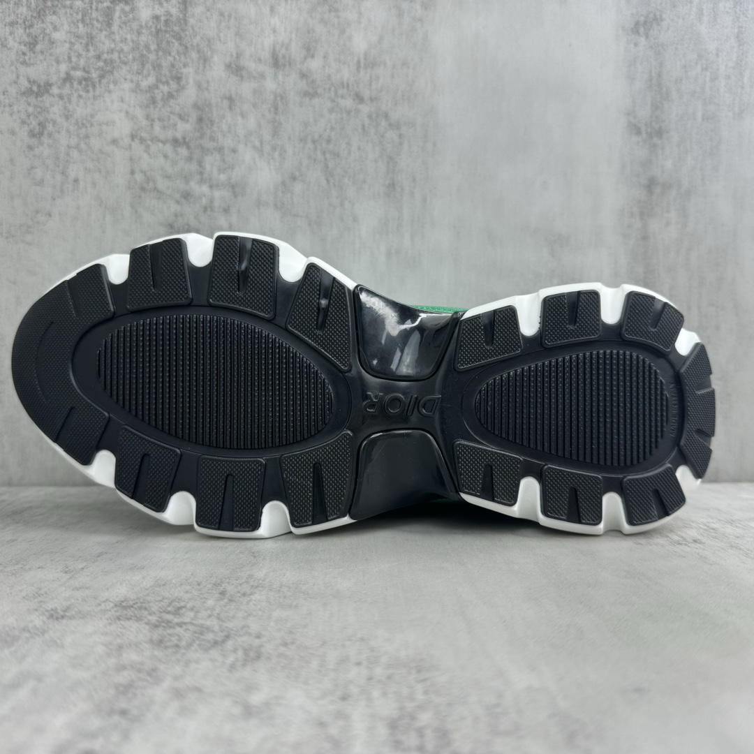 La construction de la chaussure met en avant des matériaux de haute qualité, assurant confort et durabilité. La semelle, inspirée des lames, offre une adhérence et une stabilité optimales, tout en ajoutant une dimension futuriste au design global. Les détails de finition, tels que les coutures précises et les logos discrets, témoignent du savoir-faire artisanal de Dior.