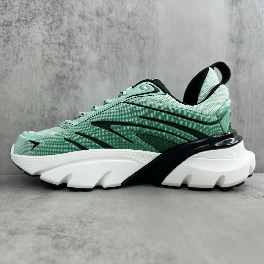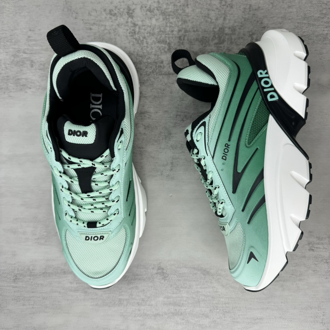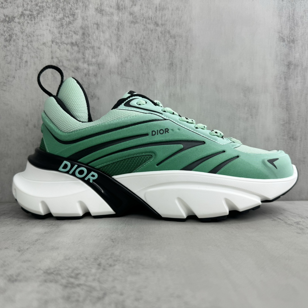 La construction de la chaussure met en avant des matériaux de haute qualité, assurant confort et durabilité. La semelle, inspirée des lames, offre une adhérence et une stabilité optimales, tout en ajoutant une dimension futuriste au design global. Les détails de finition, tels que les coutures précises et les logos discrets, témoignent du savoir-faire artisanal de Dior.