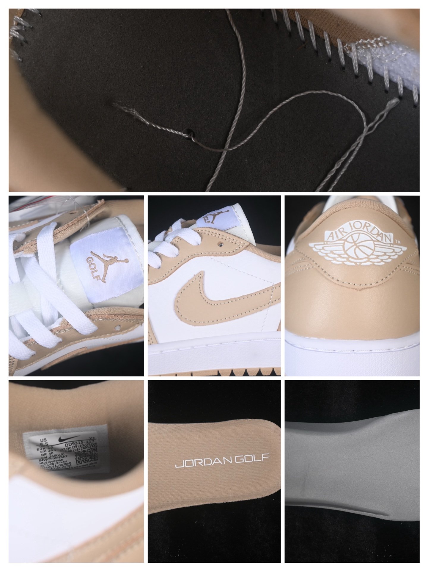 Les caractéristiques techniques de la Jordan 1 Low Golf White Linen DD9315-117 incluent une semelle intermédiaire en mousse pour un amorti optimal, une semelle extérieure en caoutchouc avec motif d’adhérence pour une traction maximale sur le green, ainsi qu’une fermeture à lacets pour un ajustement personnalisé. Ces éléments techniques garantissent une performance de haut niveau tout en conservant l’esthétique emblématique de la marque Jordan.