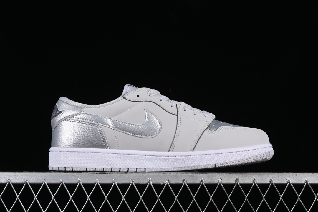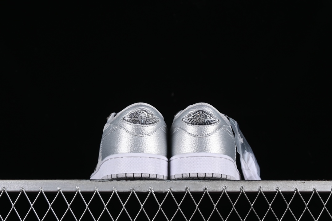 La Jordan 1 Low OG Metallic Silver CZ0790-002 est une sneaker basse qui combine élégance et confort, tout en restant fidèle à l’esthétique emblématique de la marque Jordan. Ce modèle spécifique arbore une palette de couleurs principalement noire avec des accents argentés métalliques, ce qui lui confère un look à la fois classique et accrocheur.