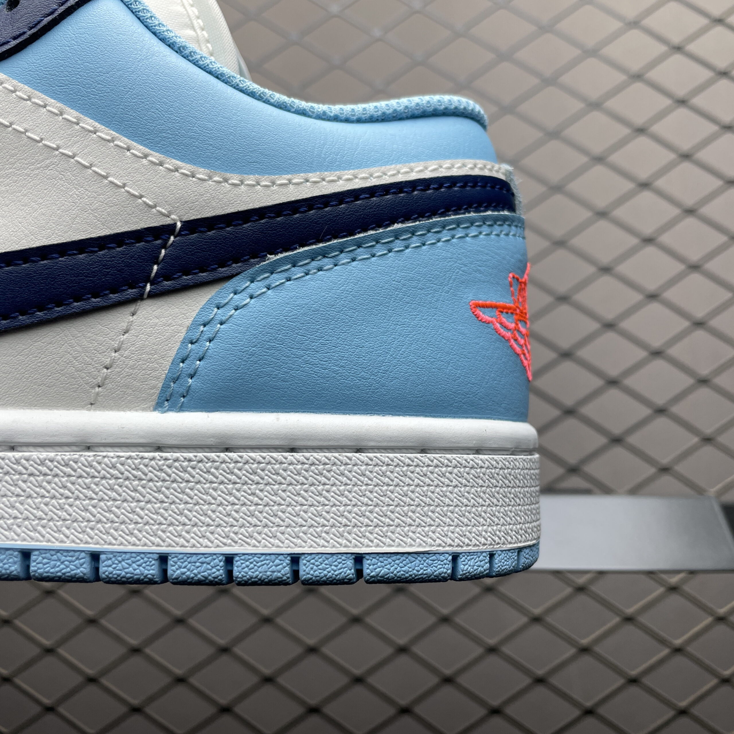 La Jordan 1 Low Sail Blue Chill est dotée d’une tige en cuir premium de couleur sail, accentuée par des touches de bleu chill sur le Swoosh, le talon et l’embout. Le logo Jumpman brodé sur la languette et le logo Wings sur le talon ajoutent une touche de sophistication, tandis que la semelle en caoutchouc offre une durabilité et une traction exceptionnelles.
