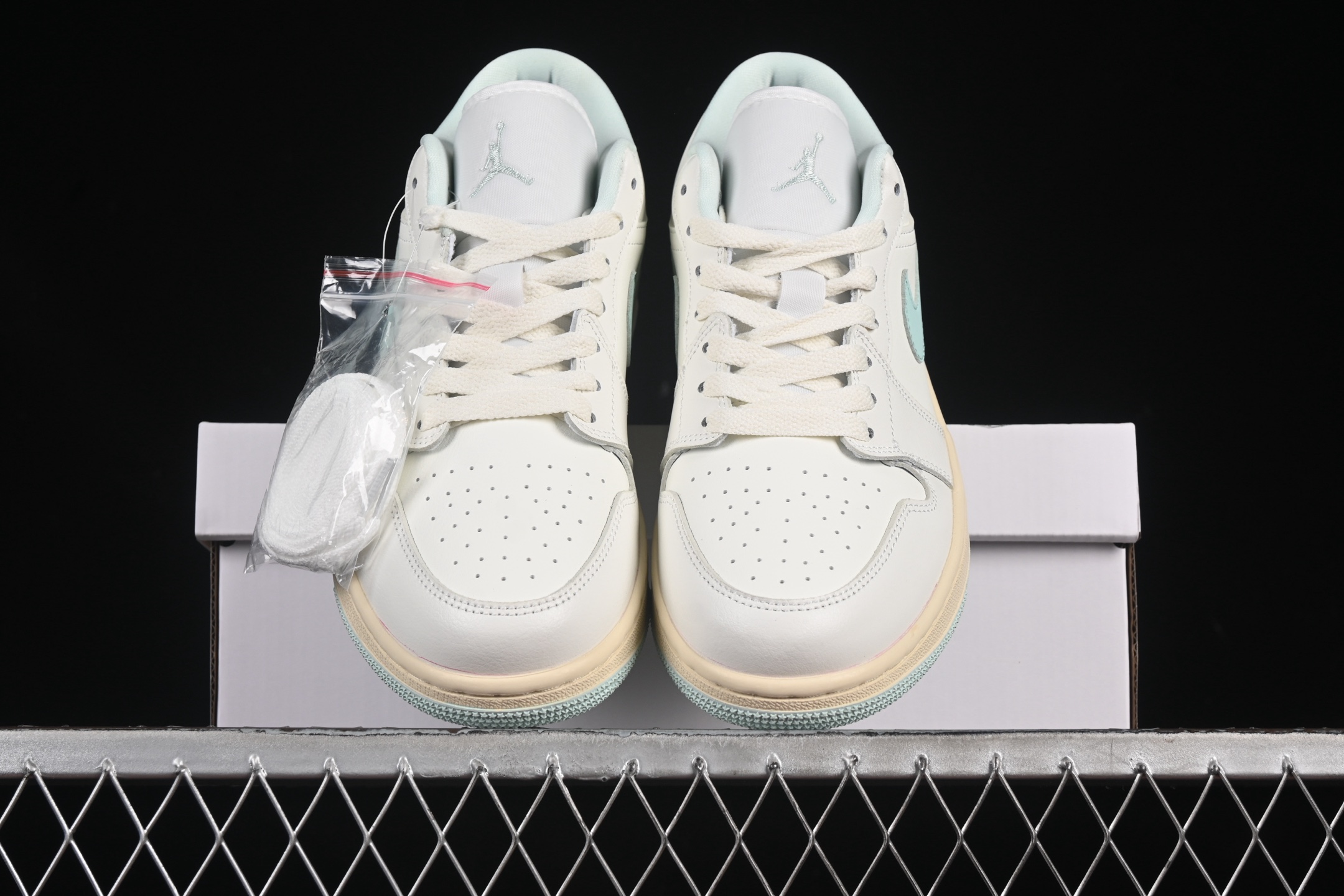 La Jordan 1 Low Sail Igloo DC0774-134 est une sneaker qui incarne l’élégance et le style emblématique de la marque Jordan. Cette version basse de la célèbre Air Jordan 1 se distingue par sa palette de couleurs unique et rafraîchissante. La tige est principalement en cuir de haute qualité, offrant une durabilité et un confort exceptionnels. La couleur « Sail » prédomine, un blanc cassé qui apporte une touche de sophistication, tandis que des accents « Igloo », un vert menthe subtil, ajoutent une note de fraîcheur et de modernité.