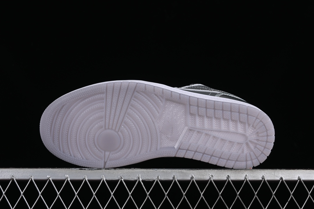 La semelle intermédiaire est en mousse, ce qui assure une bonne absorption des chocs et un confort accru pour le porteur tout au long de la journée. La semelle extérieure est en caoutchouc solide avec un motif de traction circulaire, caractéristique des Jordan 1, offrant une excellente adhérence et durabilité.