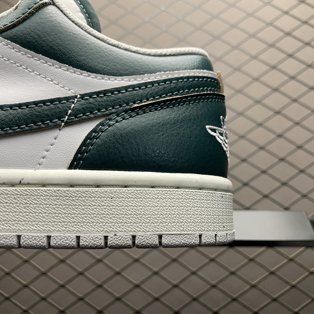 En termes de finitions, l’Air Jordan 1 Low « Oxidized Green/Sail » inclut le logo Air Jordan Wings sur le talon et le logo Jumpman sur la languette, tous deux subtilement incorporés pour maintenir l’esthétique épurée.