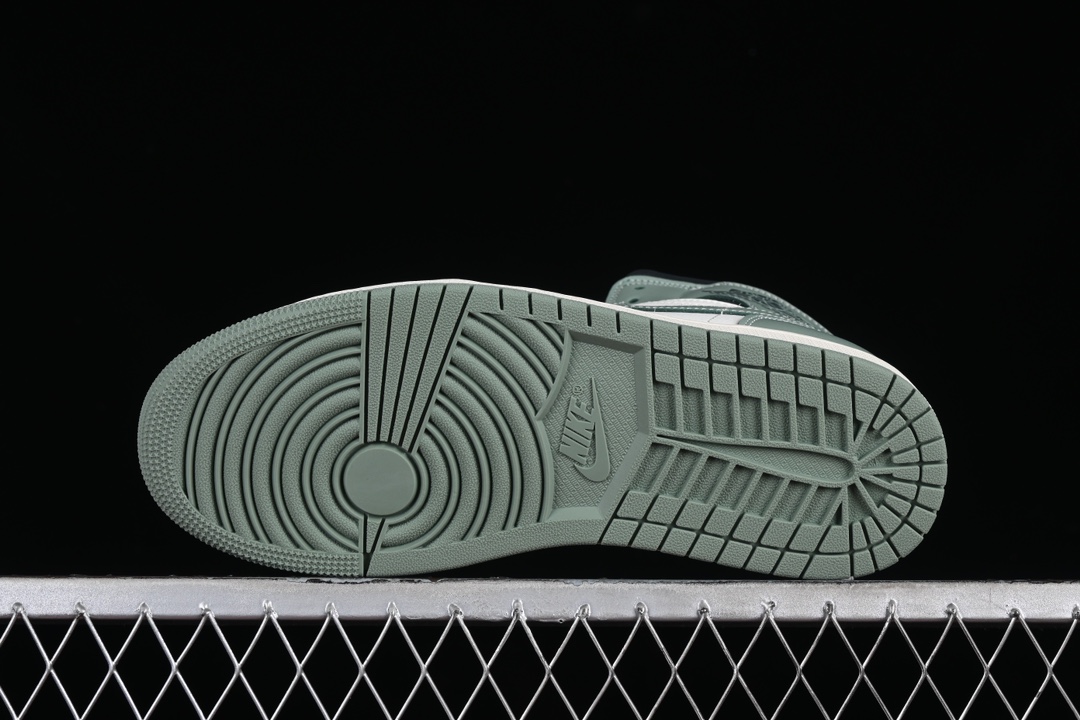 La silhouette mid-top de la Jordan 1 Mid Jade Smoke assure un soutien confortable de la cheville, tout en restant fidèle à l’esthétique classique de la Jordan 1. Les perforations sur la toe box (partie avant de la chaussure) garantissent une bonne ventilation, rendant la chaussure adaptée à un usage quotidien.