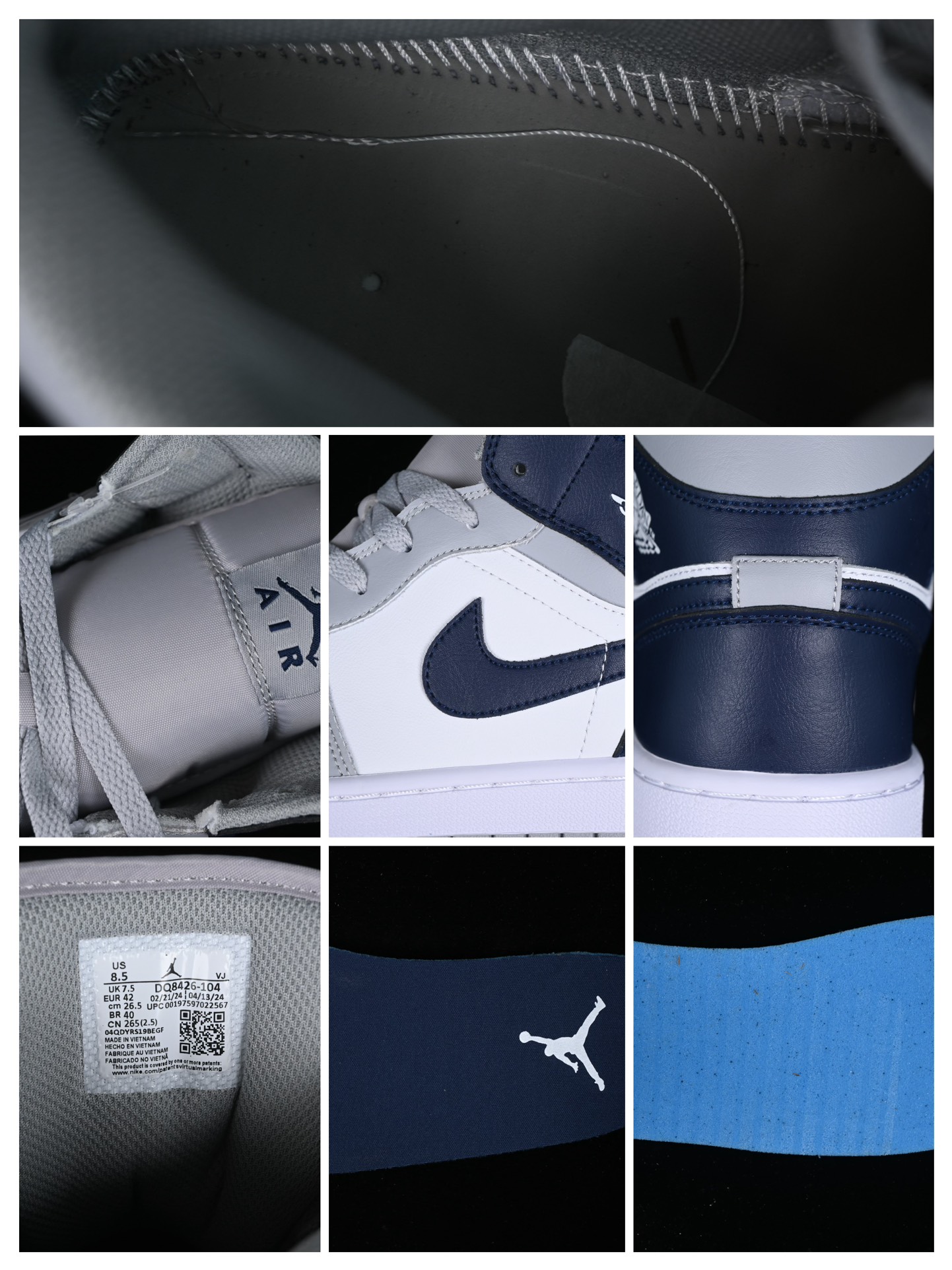 La Jordan 1 Mid Wolf Grey Midnight Navy DQ8426-104 est une sneaker de la marque Jordan, une subdivision de Nike, qui s’inspire du premier modèle de Air Jordan conçu pour Michael Jordan en 1985. Cette version mid-top présente une combinaison de couleurs sobre et élégante, dominée par des tons de gris « Wolf Grey » et de bleu « Midnight Navy ».