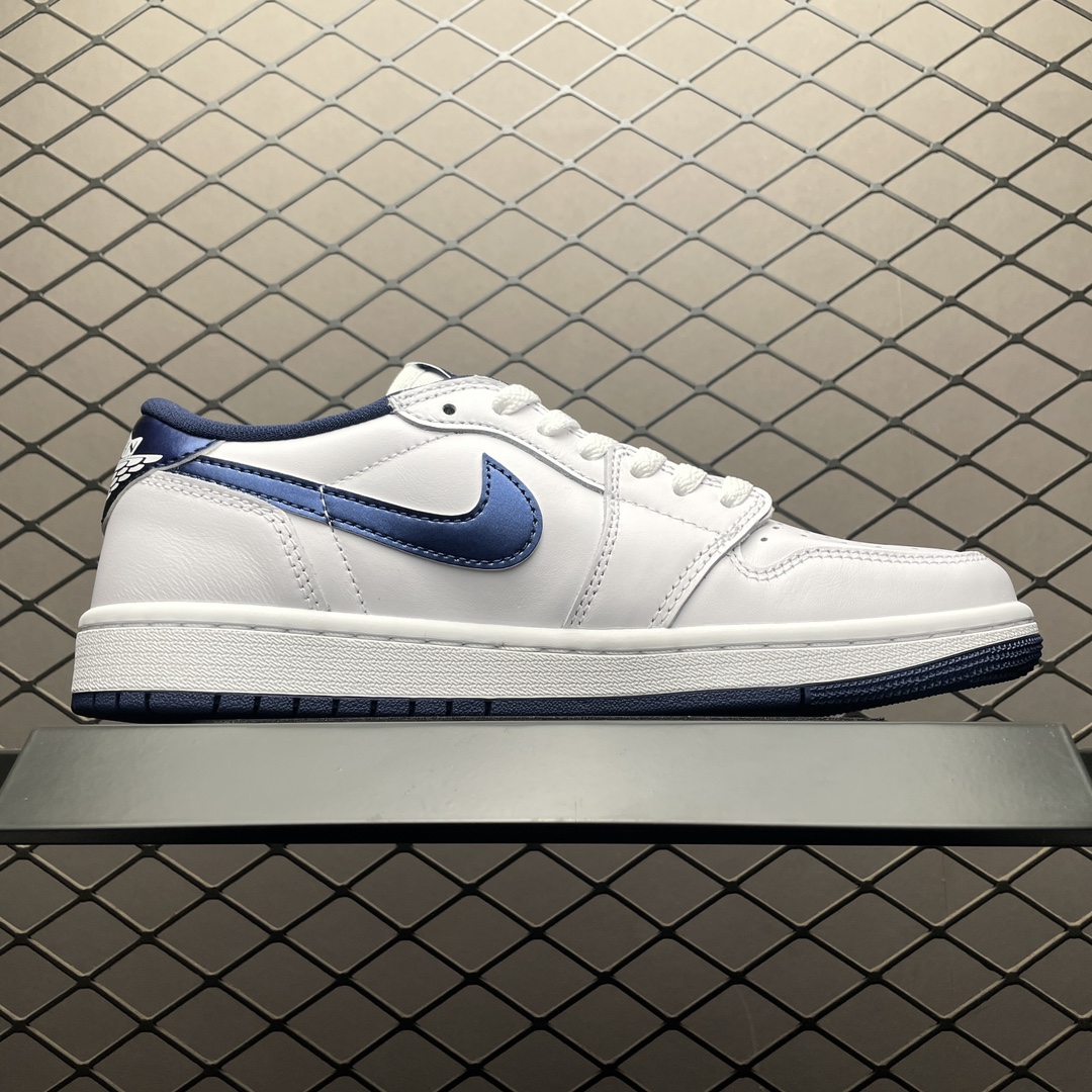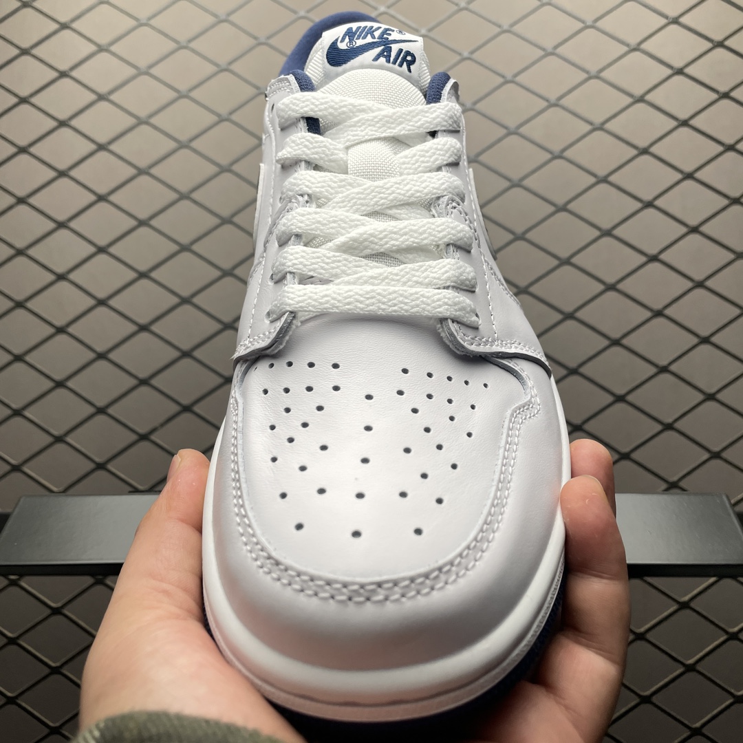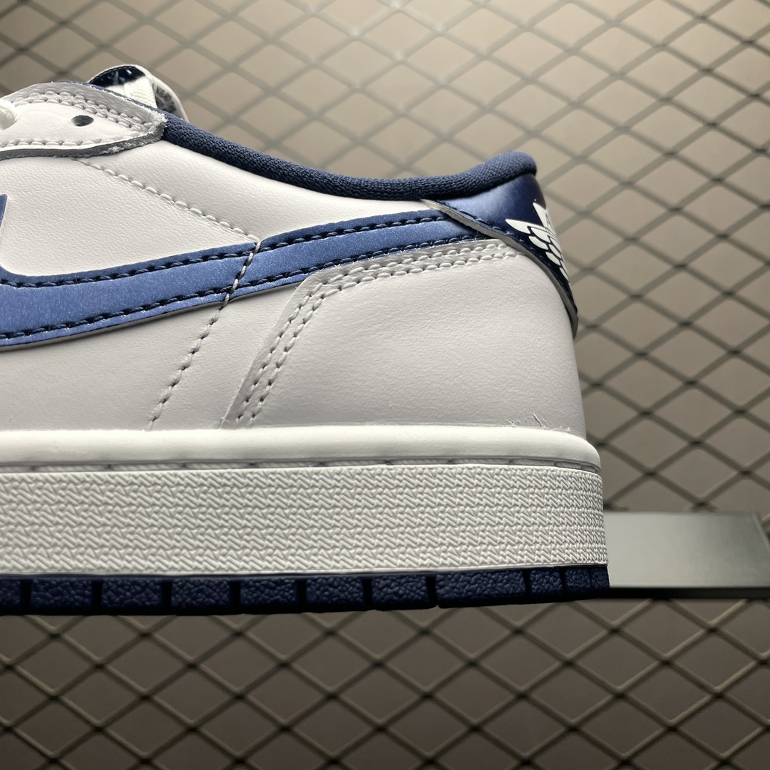 La Jordan 1 Retro Low ’85 Metallic Blue FB9933-141 est une sneaker basse qui s’inspire du modèle original de 1985, combinant un style rétro avec des éléments modernes. Cette chaussure présente une base en cuir de couleur blanche, agrémentée de détails en cuir métallique bleu, notamment sur le swoosh, le contrefort et autour de la cheville, offrant ainsi un contraste saisissant et une touche d’éclat.